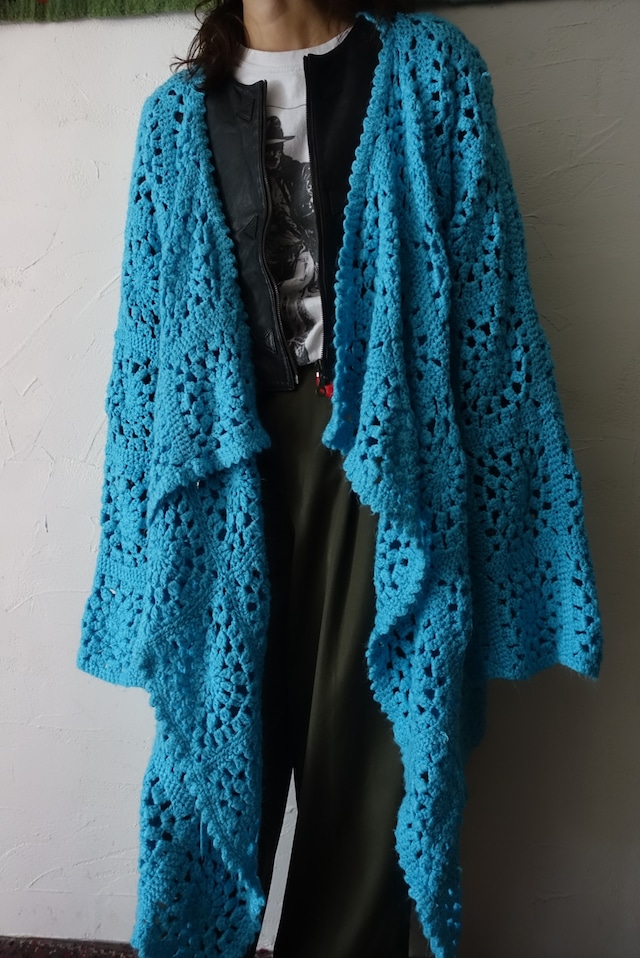 ホームメイドでしょうか? たっぷりした分量感が素敵なクロシェカーディガン ざっくり羽織れて透け感と色味が可愛い1着。 アクリル系の比較的軽いニットの質感のため インナー調整でロングシーズンお楽しみ頂けます。 細かなスレやピリングなどは少し見られますが 着用に致命的なダメージはございません。 古着にご理解の上、宜しくお願いいたします。 モデル身長155cm 肩幅56 身幅57 着丈104(1番長い部分で計測) 袖丈55