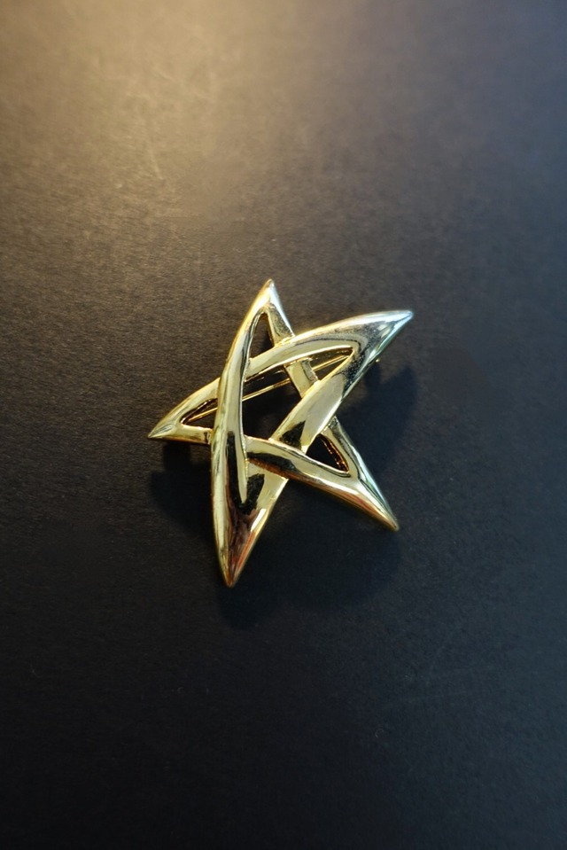 ゴールドトーンの五芒星ブローチ。 五角をランダムに結ぶラインから生まれるシャープな星。 popな印象に傾かず、引き締め役として楽しめそうな一点です。 ◉サイズ 縦 約5.5cm 幅 約5.5cm ピンの長さ 約4cm ◉素材 表記はございませんが、合金素材(金メッキ)に見受けられます。 ◉コンディション 全体に浅く細かな傷がございます。 使用に致命的なダメージはございませんが、usedにご理解の上宜しくお願い致します。 *ブローチのみをご注文の場合は ポスト投函のレターパックライトでの発送が最安値となります。 対面でのお受取をご希望の場合はレターパックプラスをご選択くださいませ。