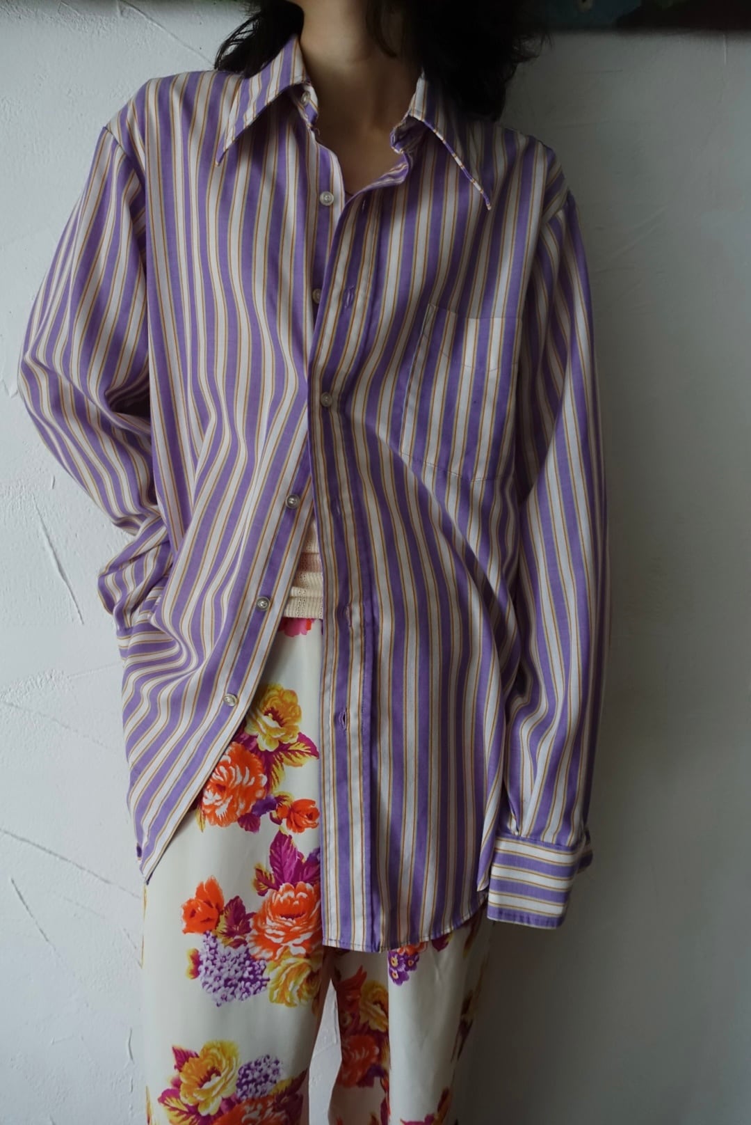 70s USA mulch stripe dress shirt