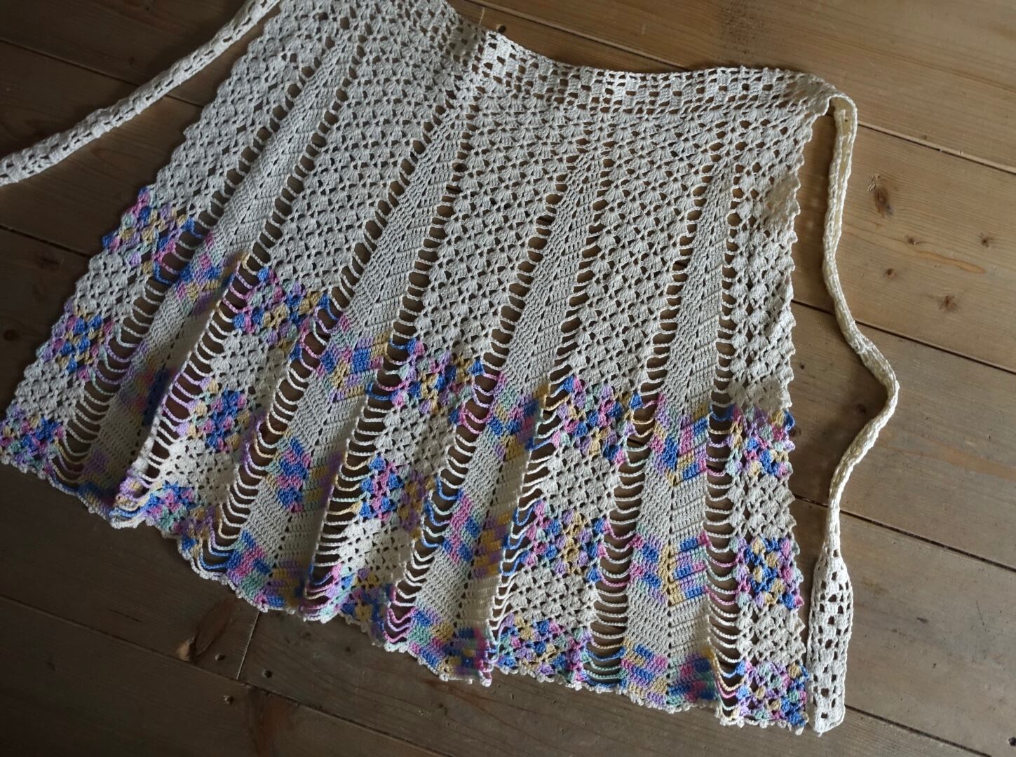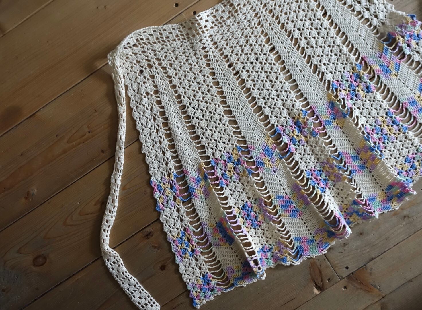 1970s~ USA hand crochet apron mulch