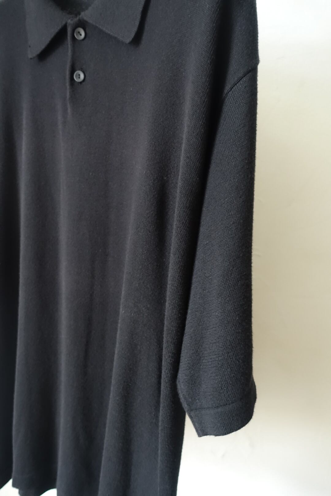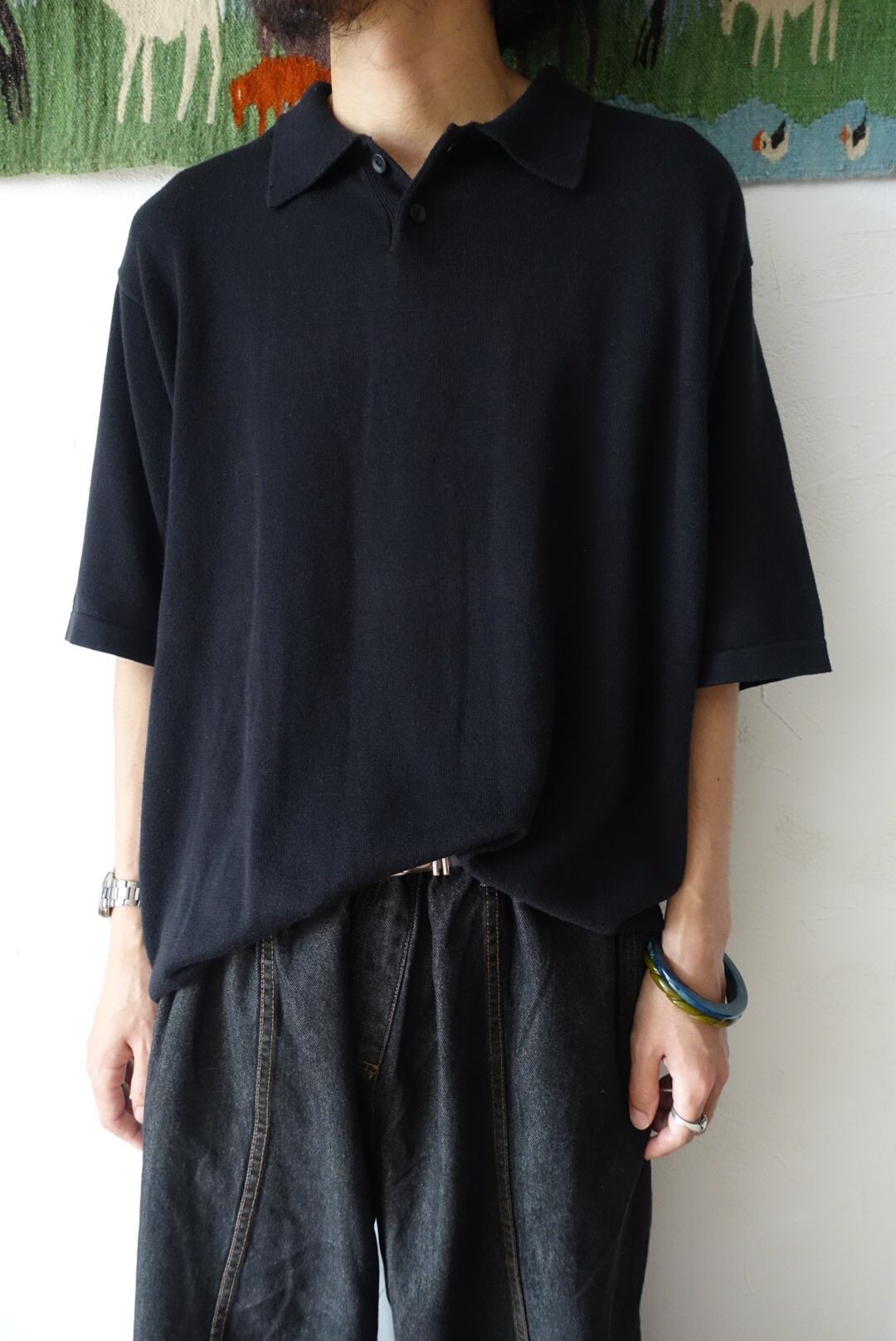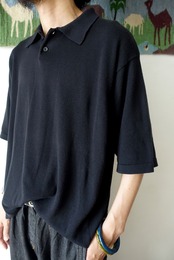 ベーシックで日常使いにも便利な 黒 半袖ニットポロ