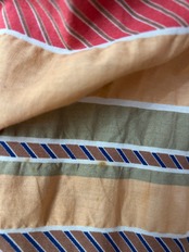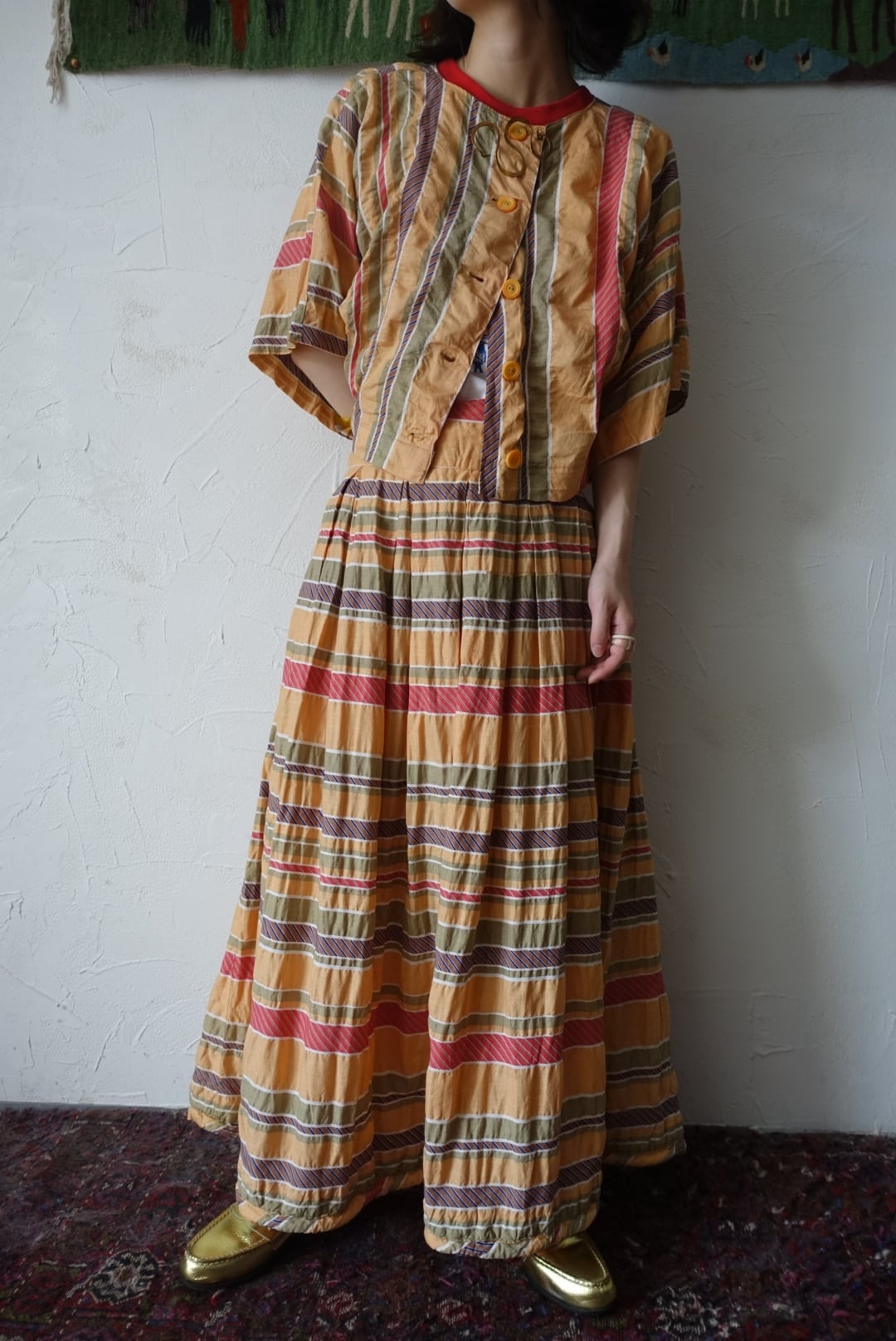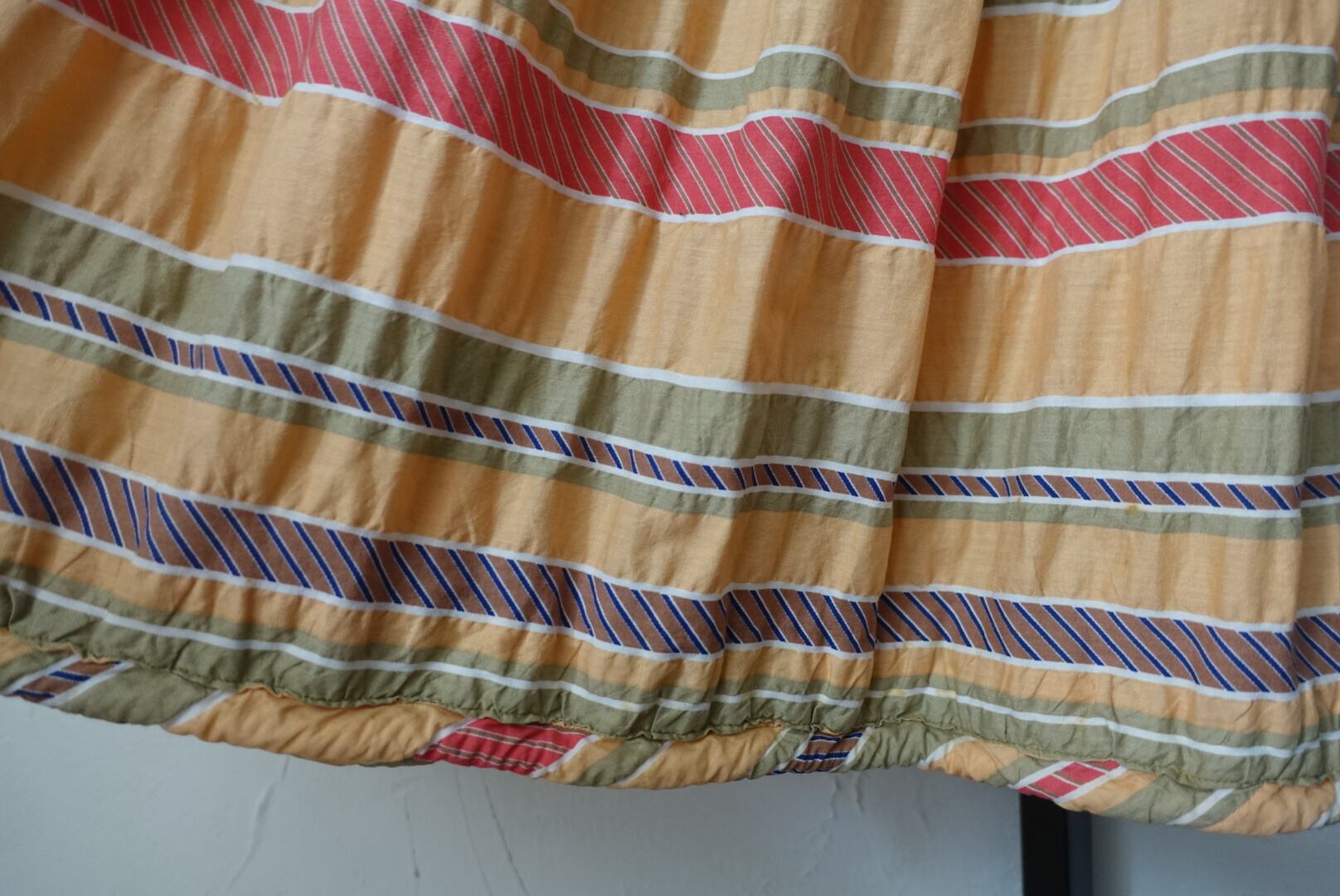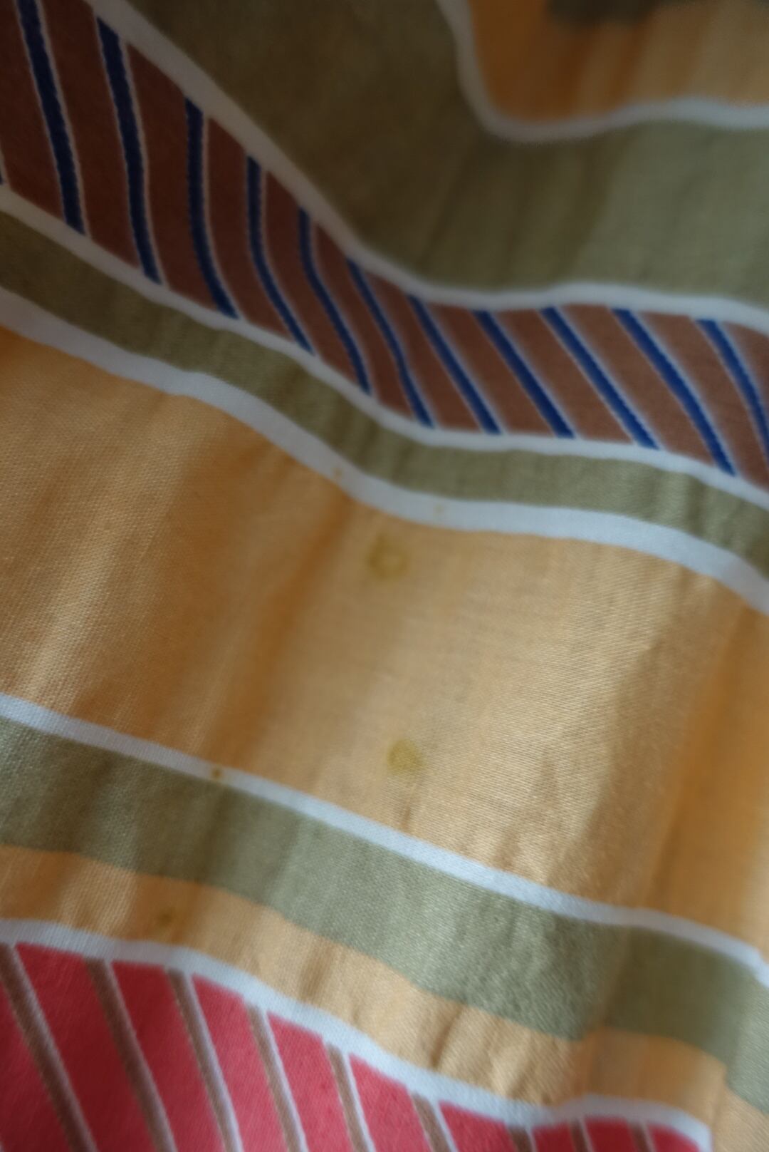 マルチボーダーとレジメンタルストライプを掛け合わせた素敵なテキスタイル。珍しいです。