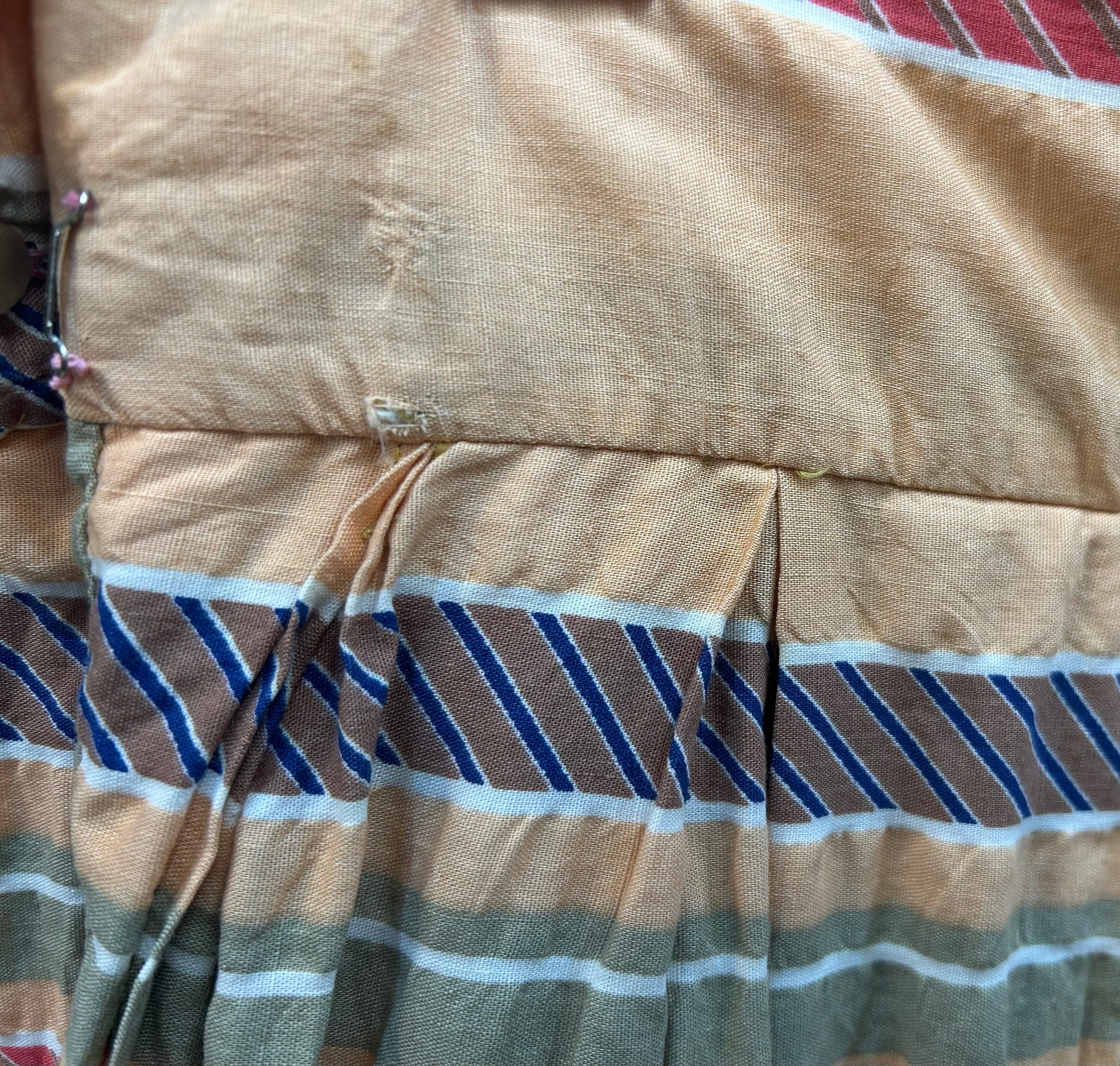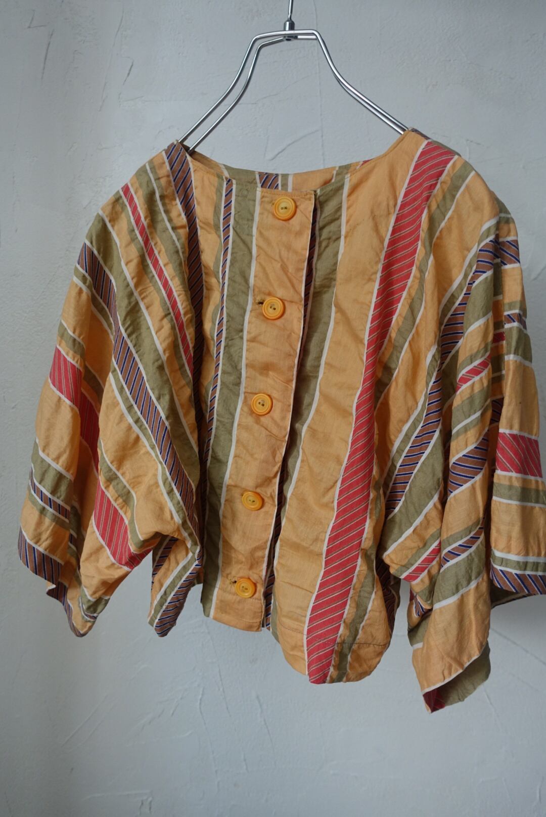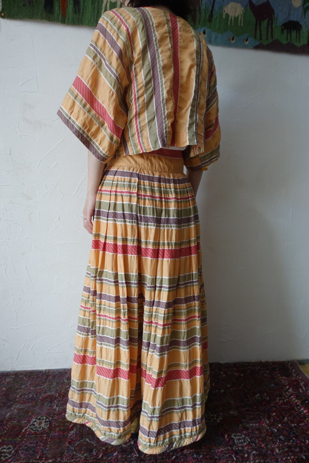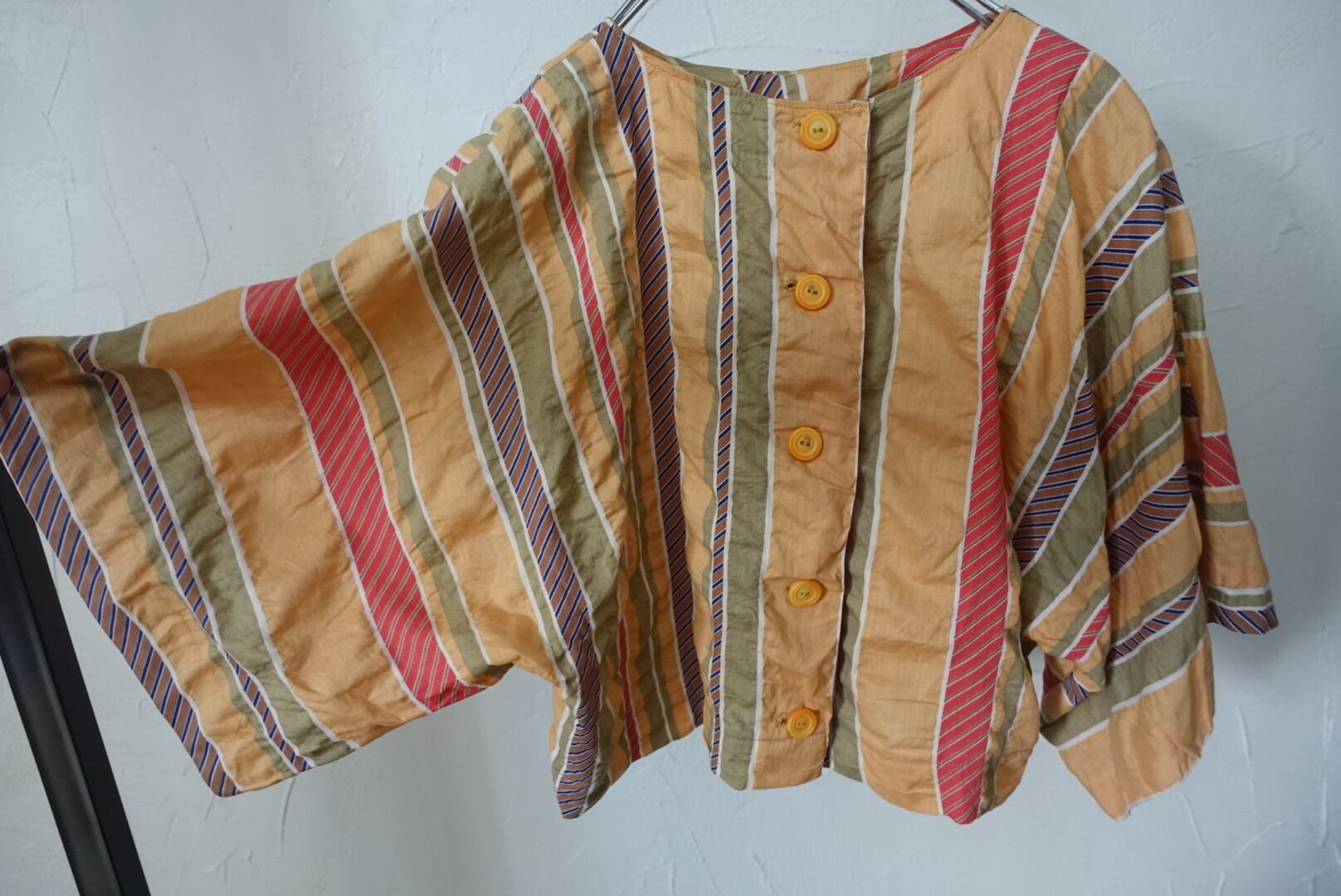 マルチボーダーとレジメンタルストライプを掛け合わせた素敵なテキスタイル。珍しいです。