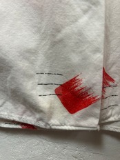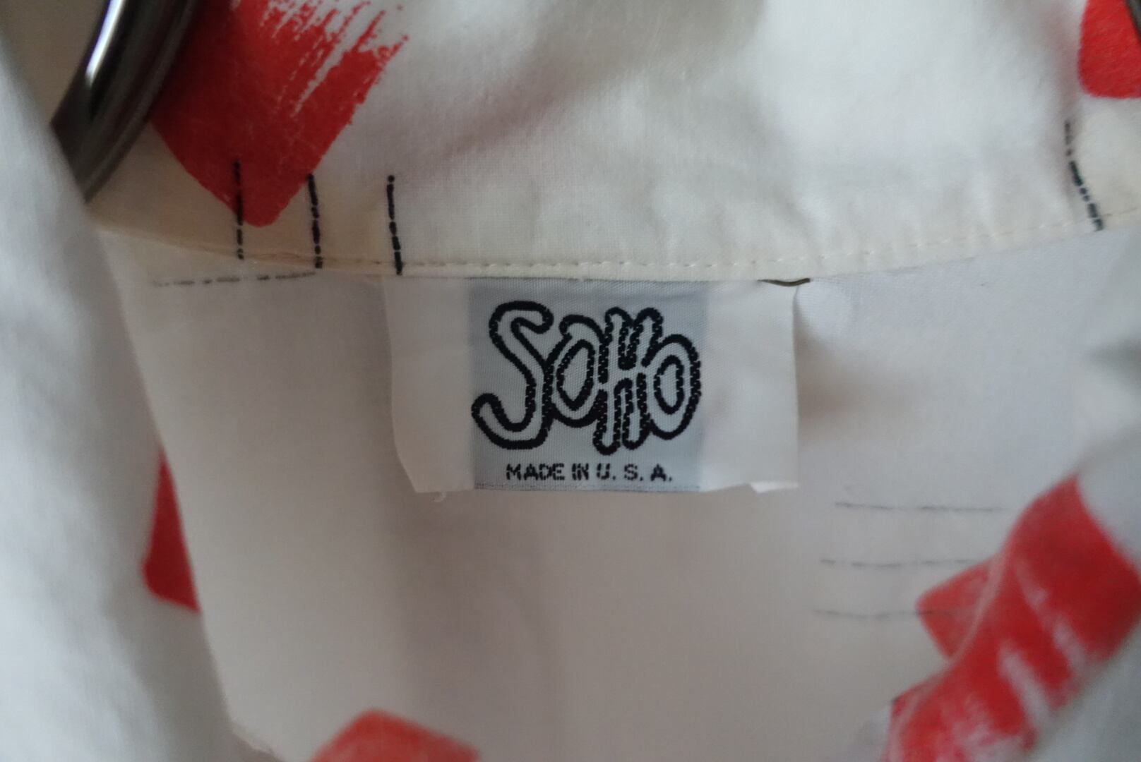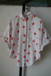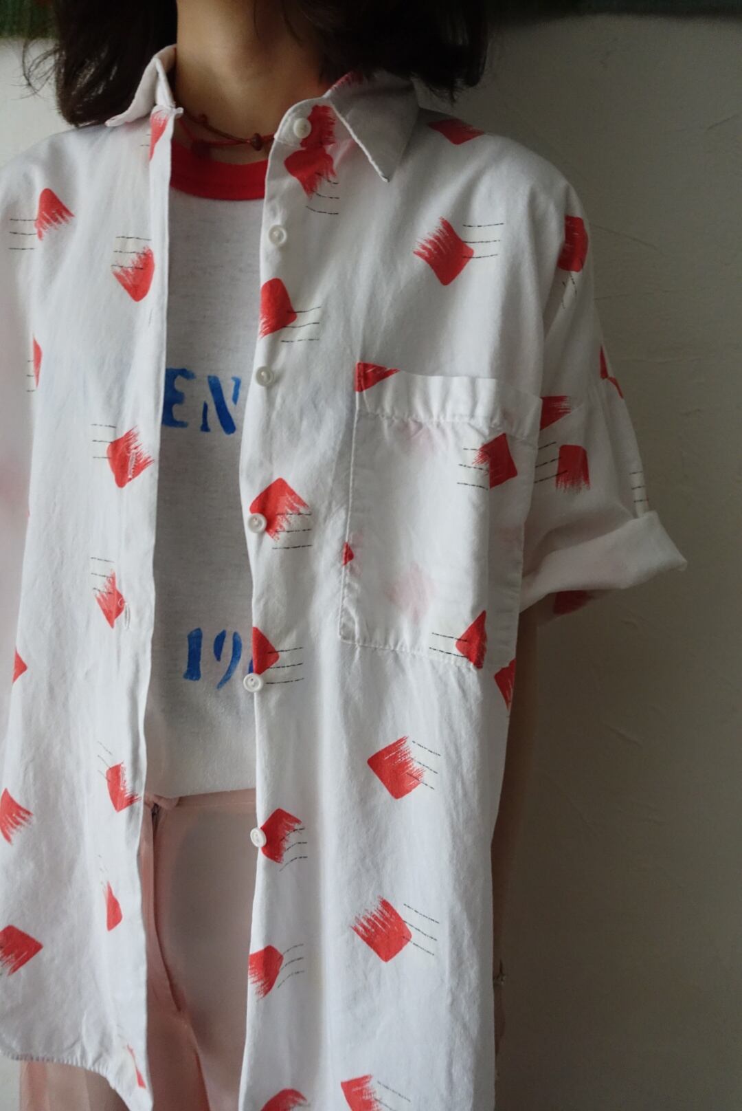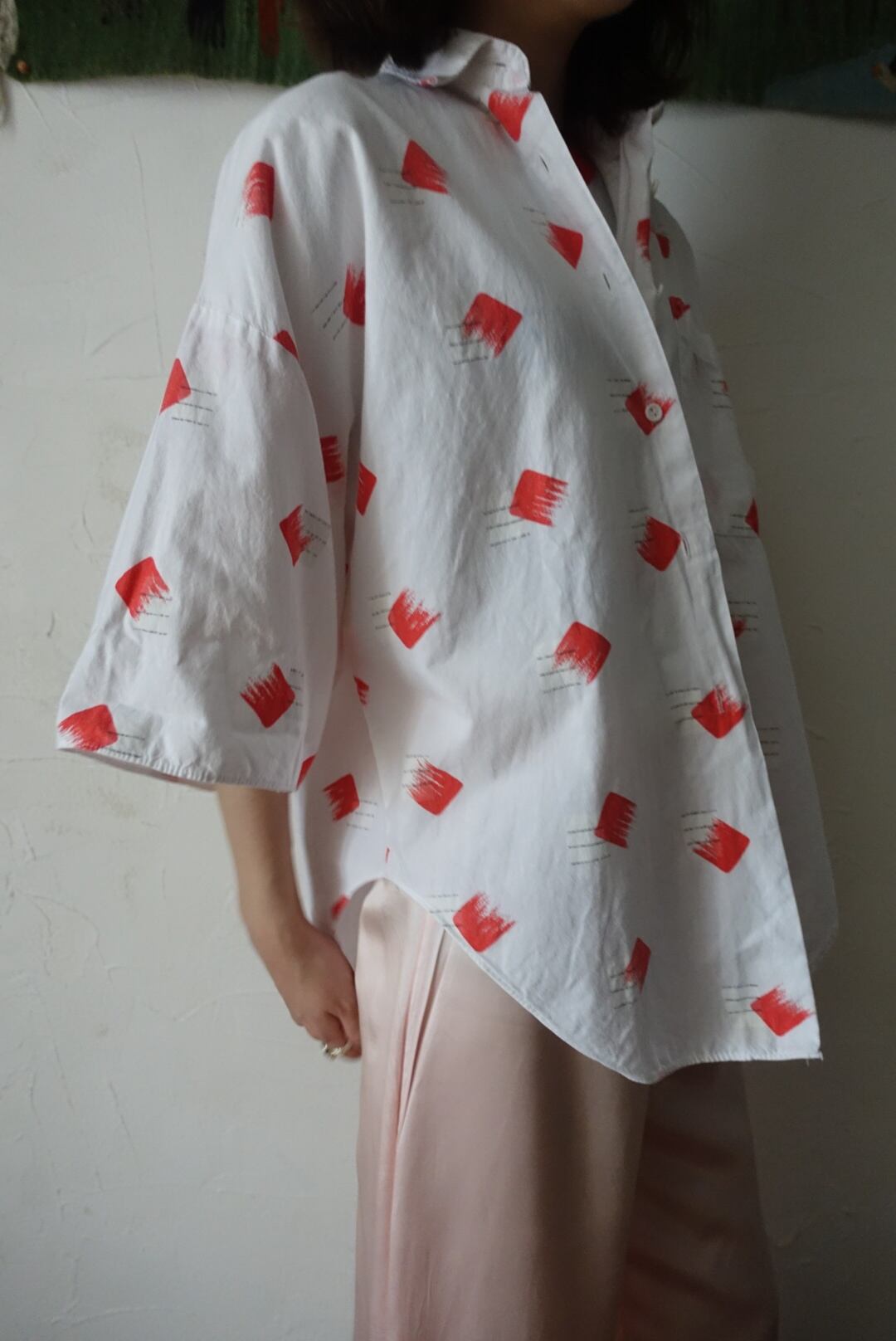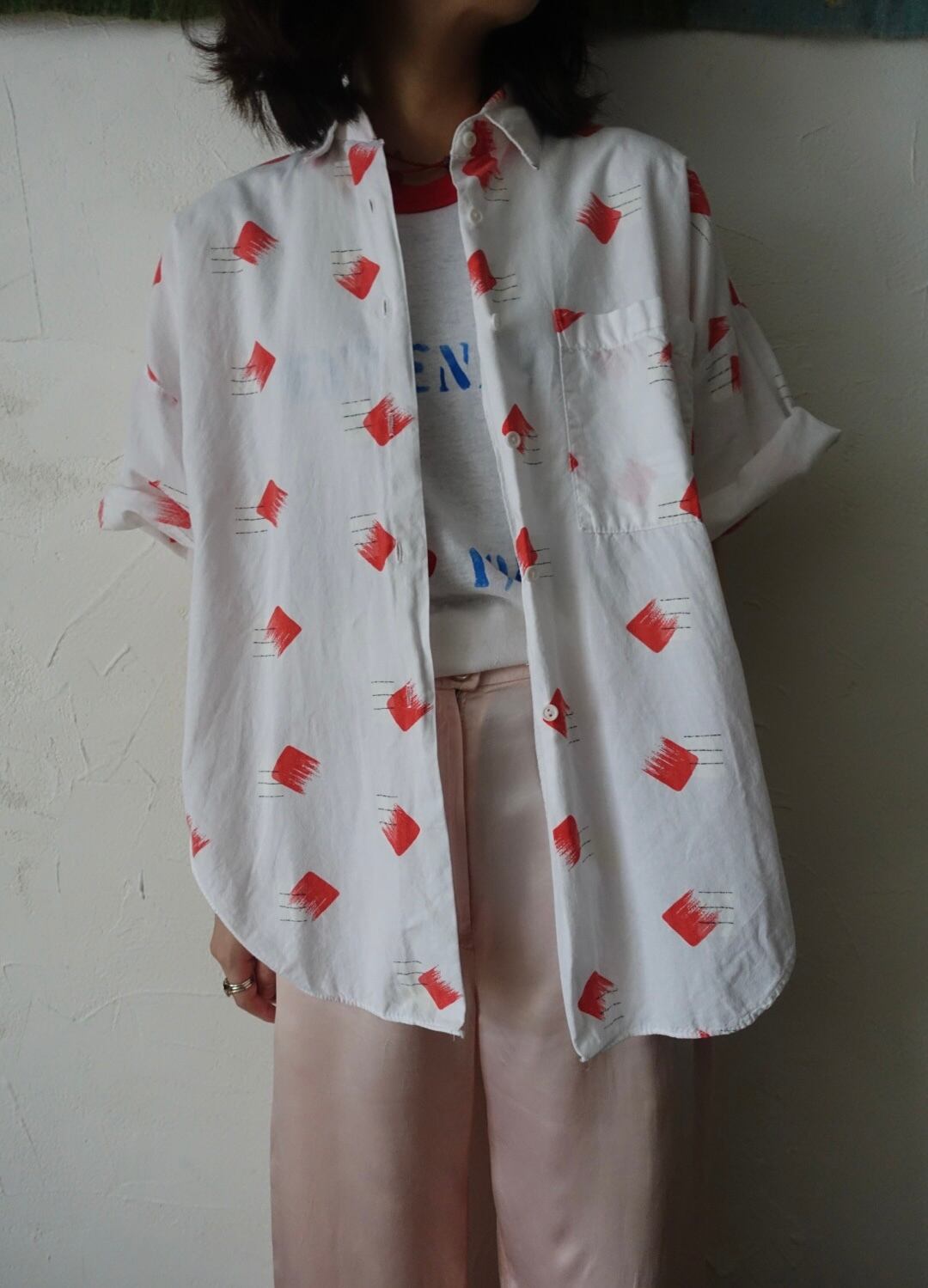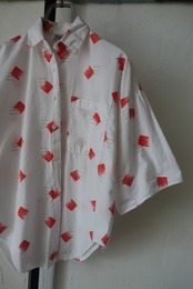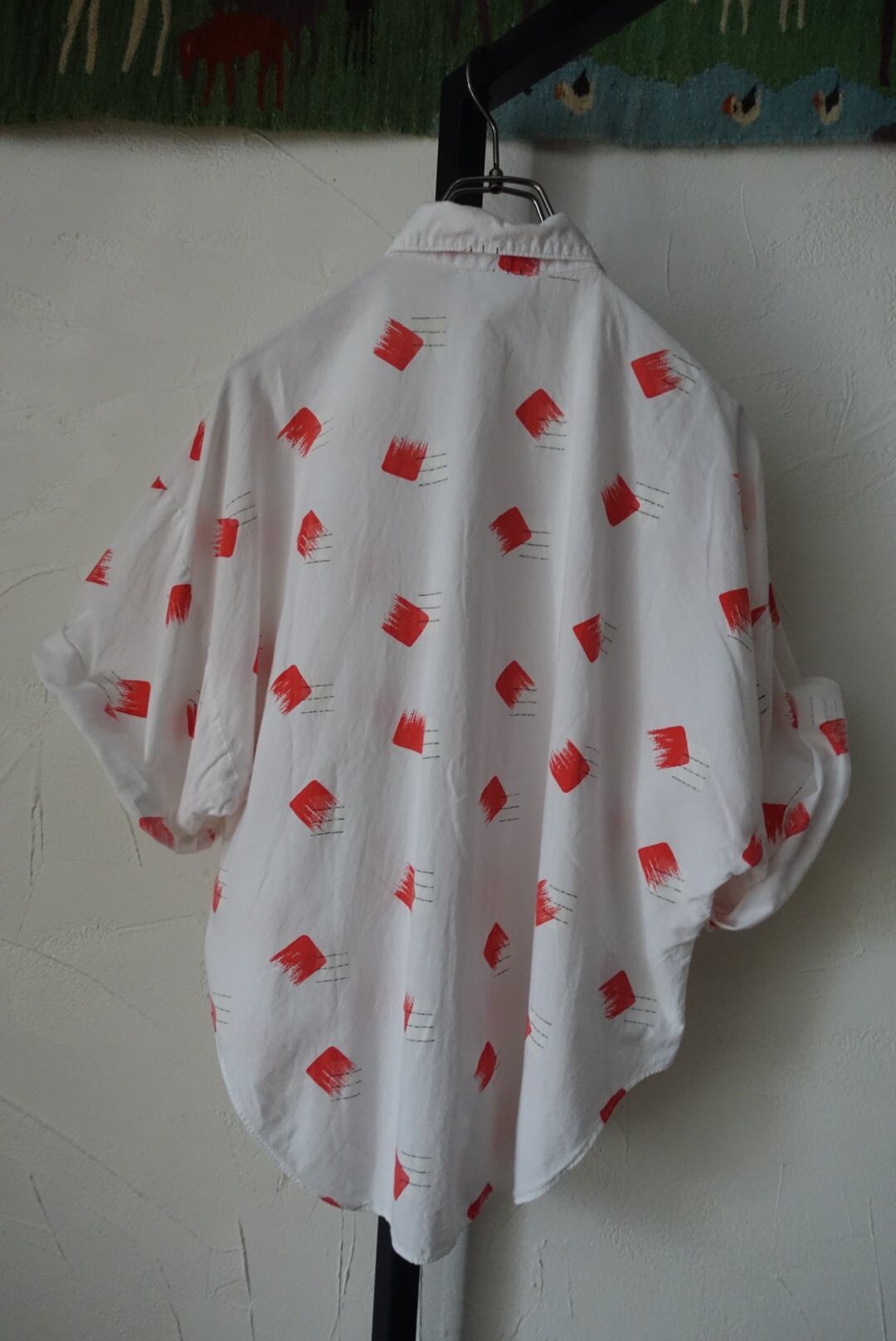 ふわっと広がるシルエットとジオメトリック柄が可愛い80sブラウス。