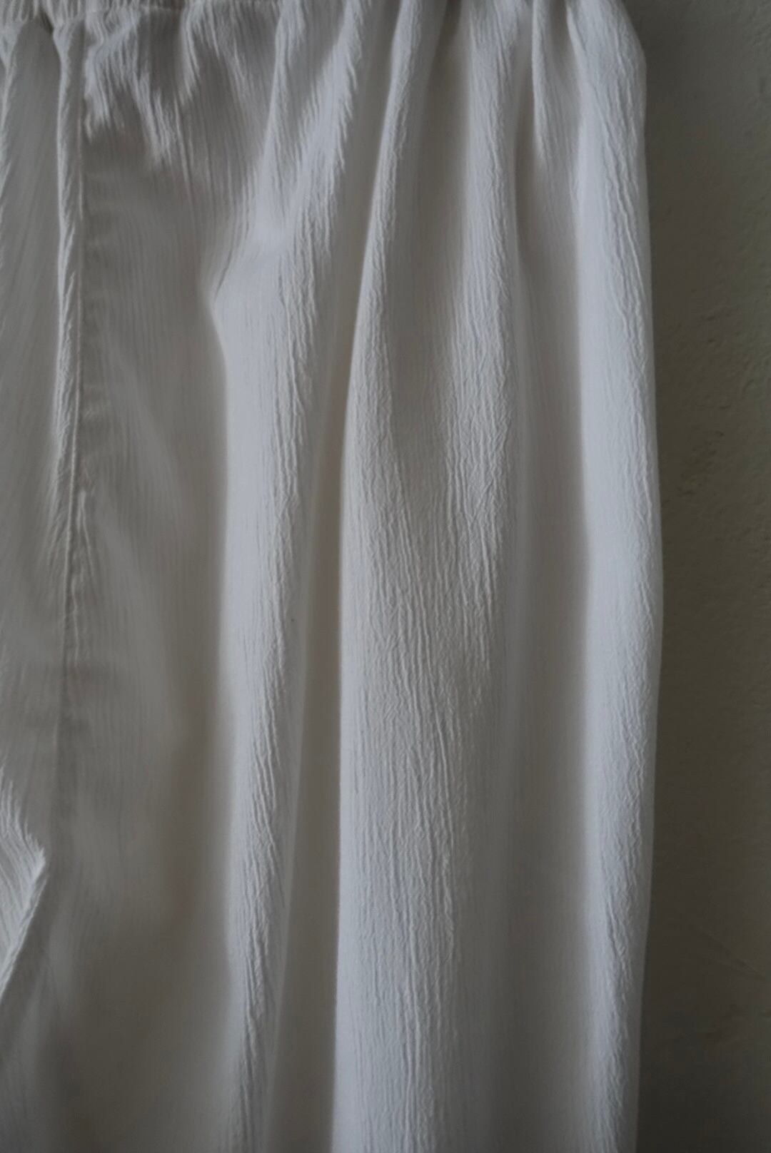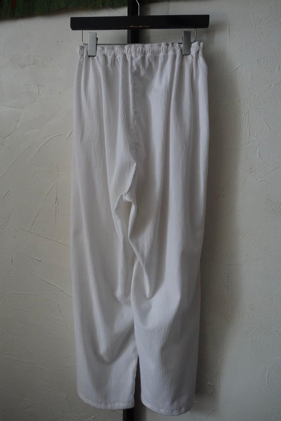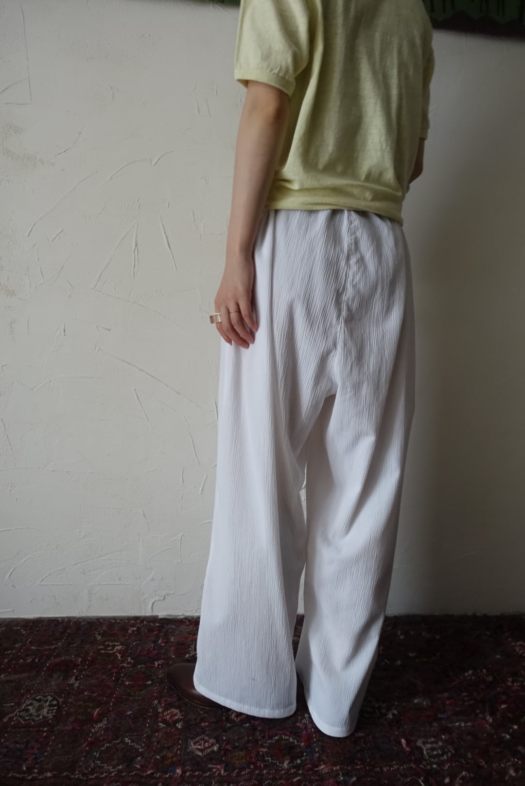 凹凸感あるクレープ生地が特徴的なホワイトパンツ