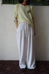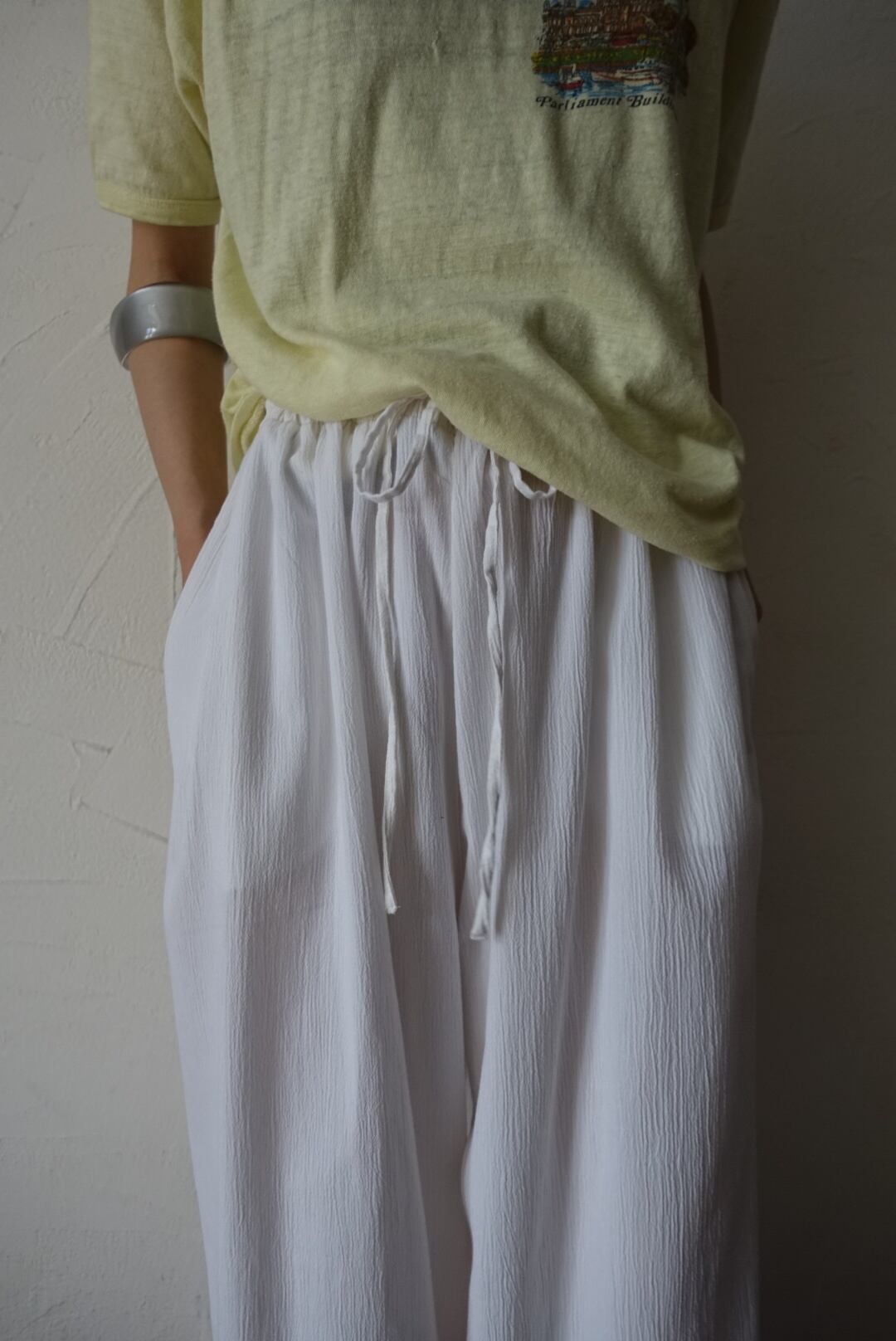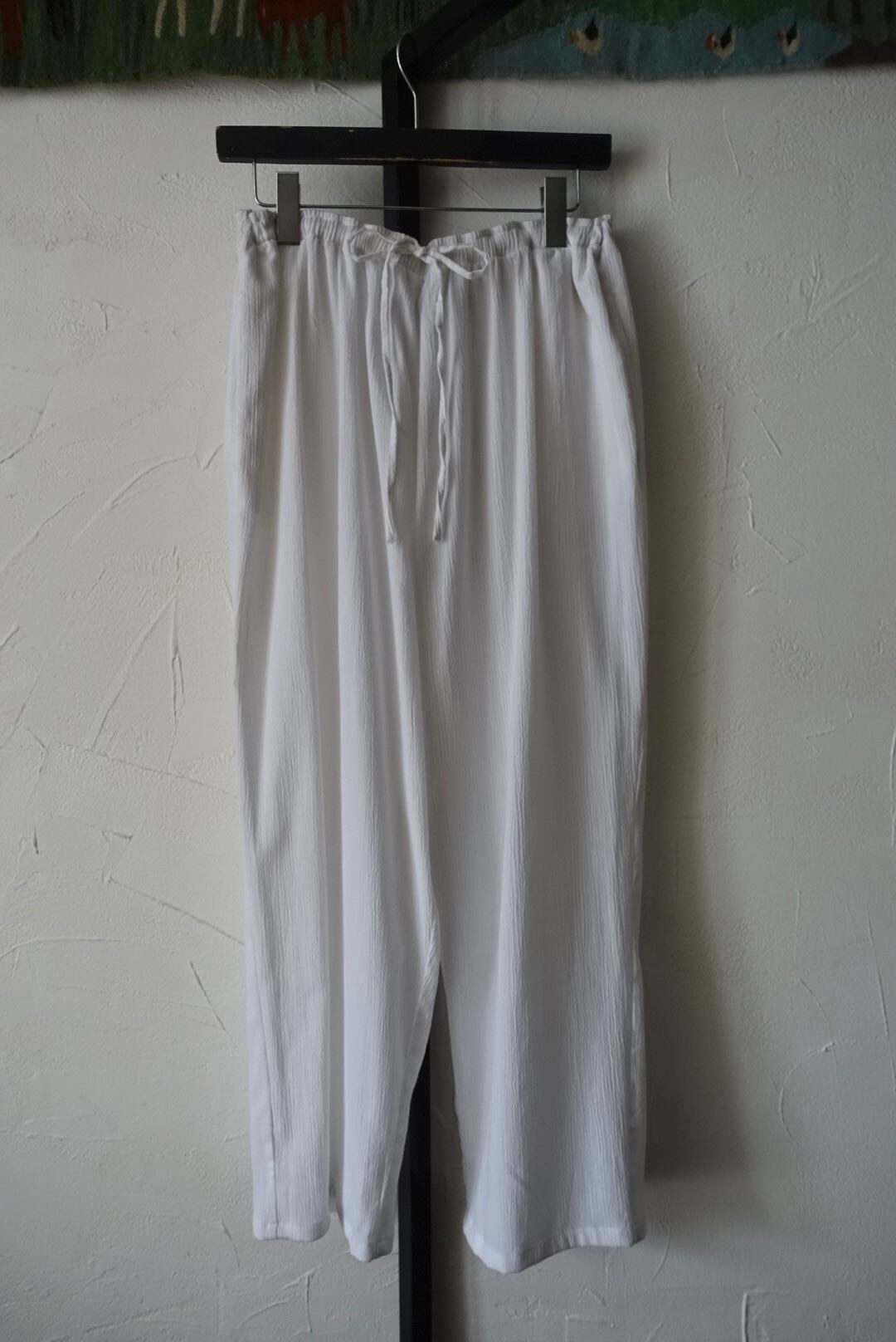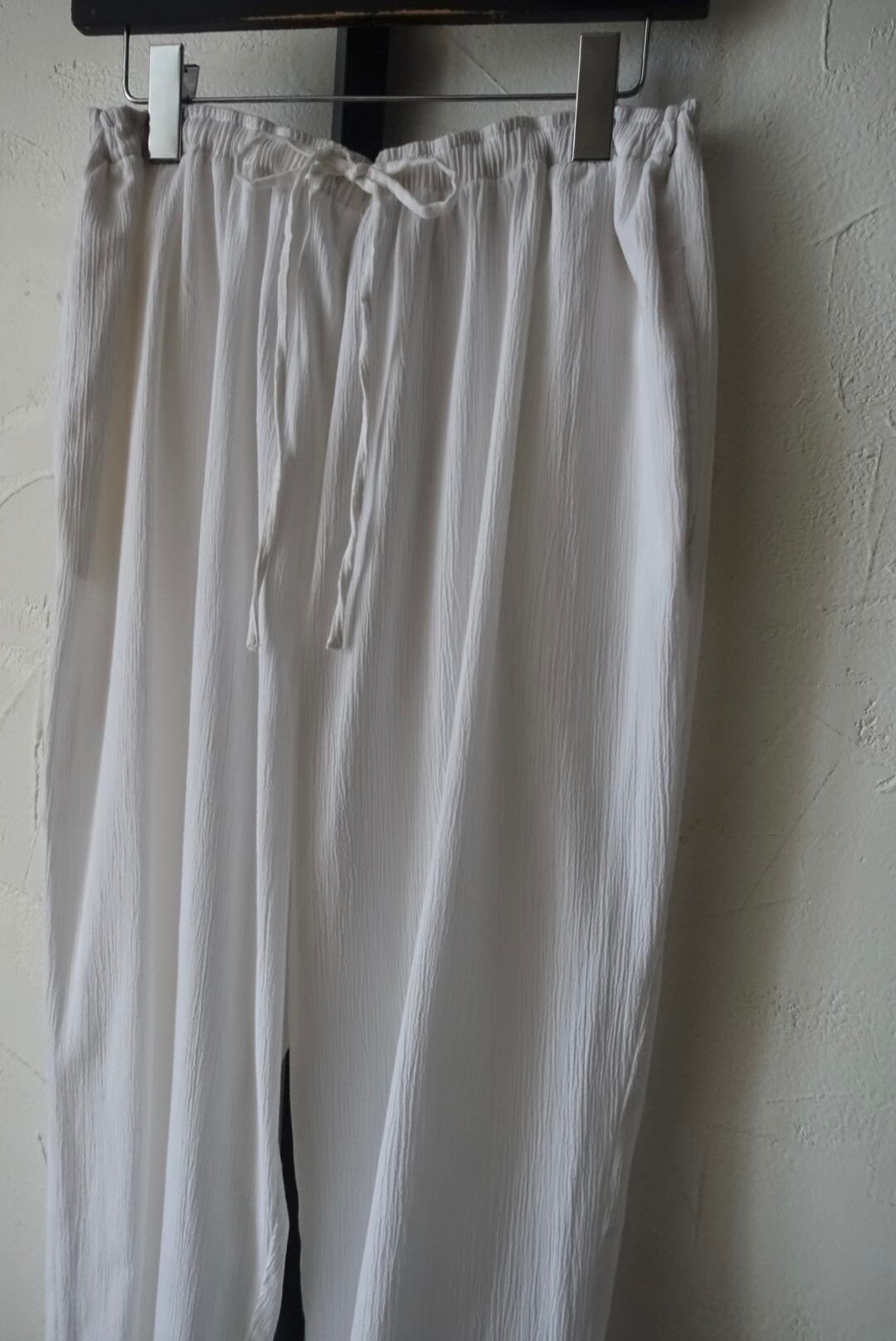 凹凸感あるクレープ生地が特徴的なホワイトパンツ