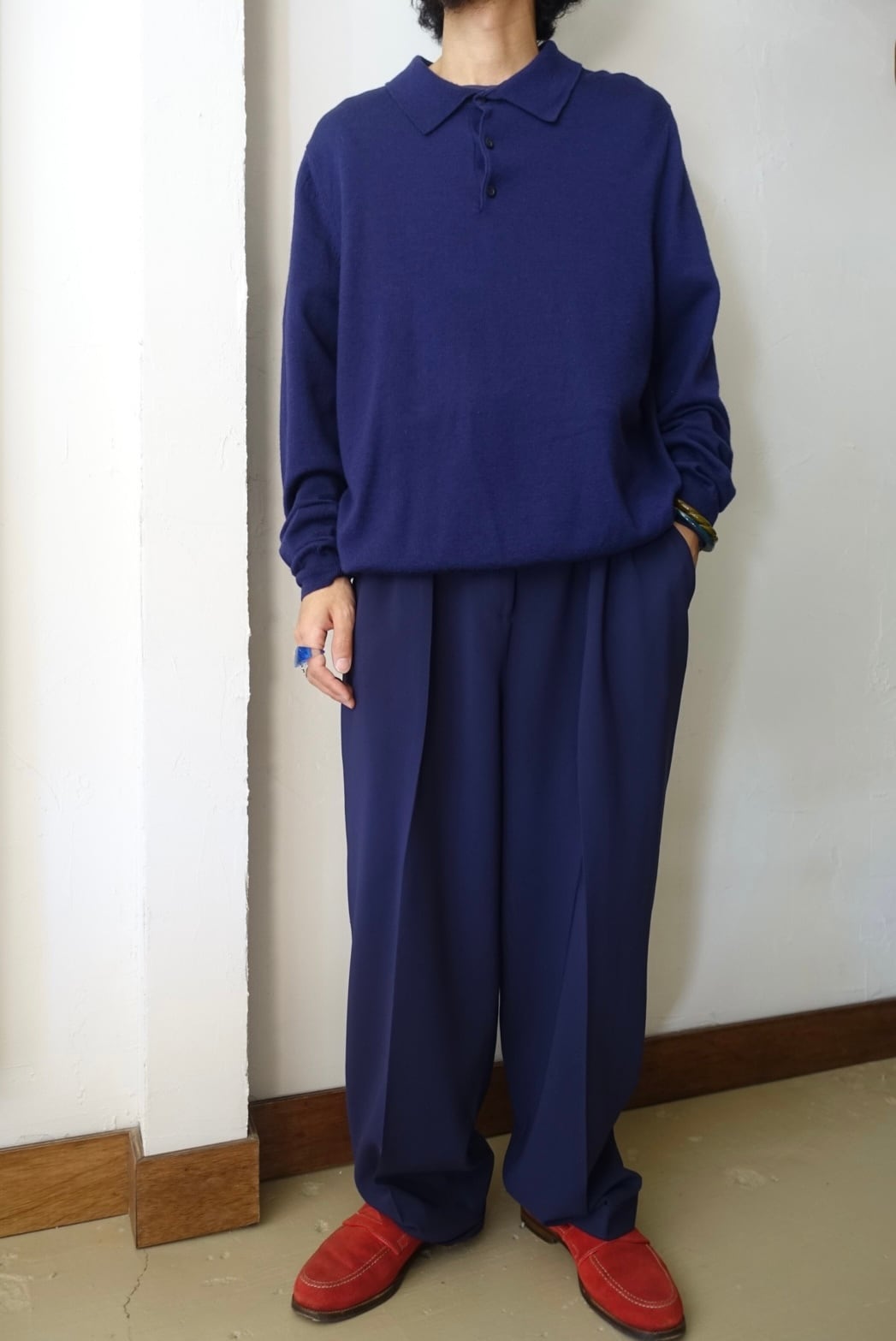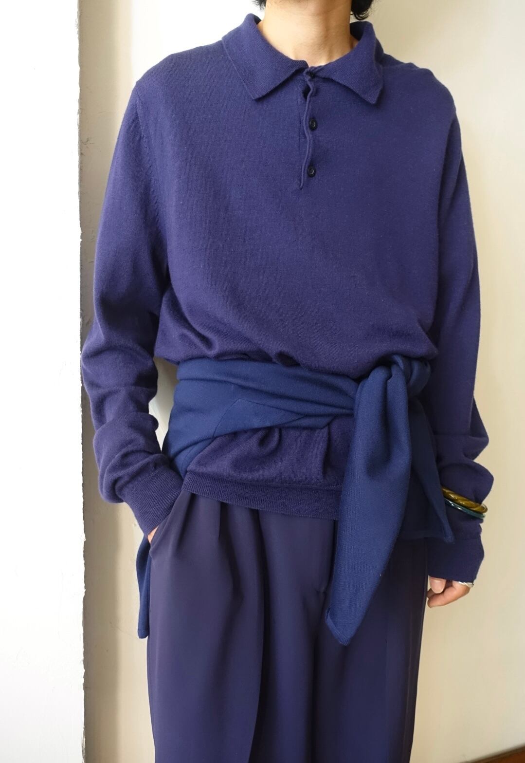 ナス紺なカラーが魅力のウールニットポロ