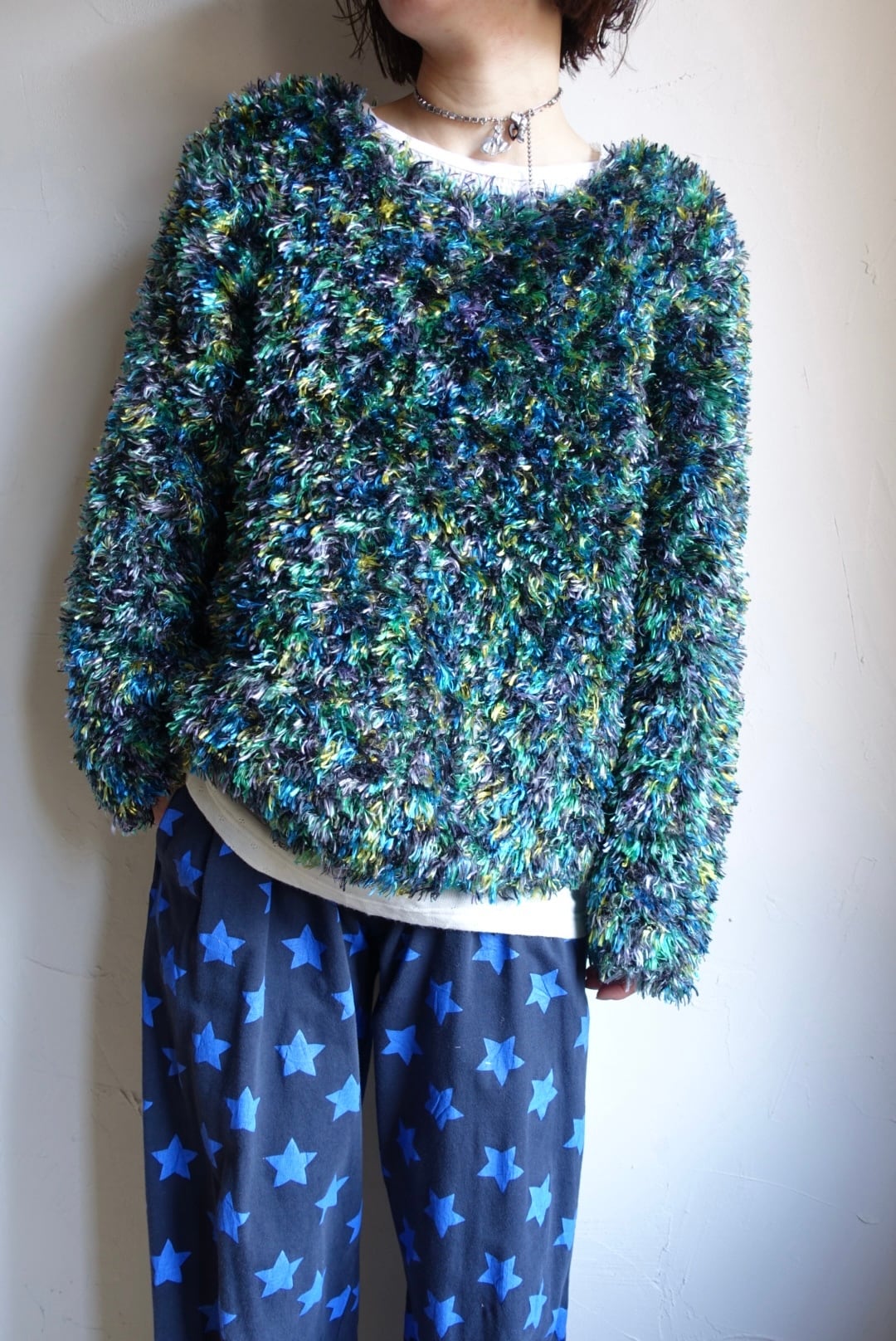 90s mix color shaggy sweater