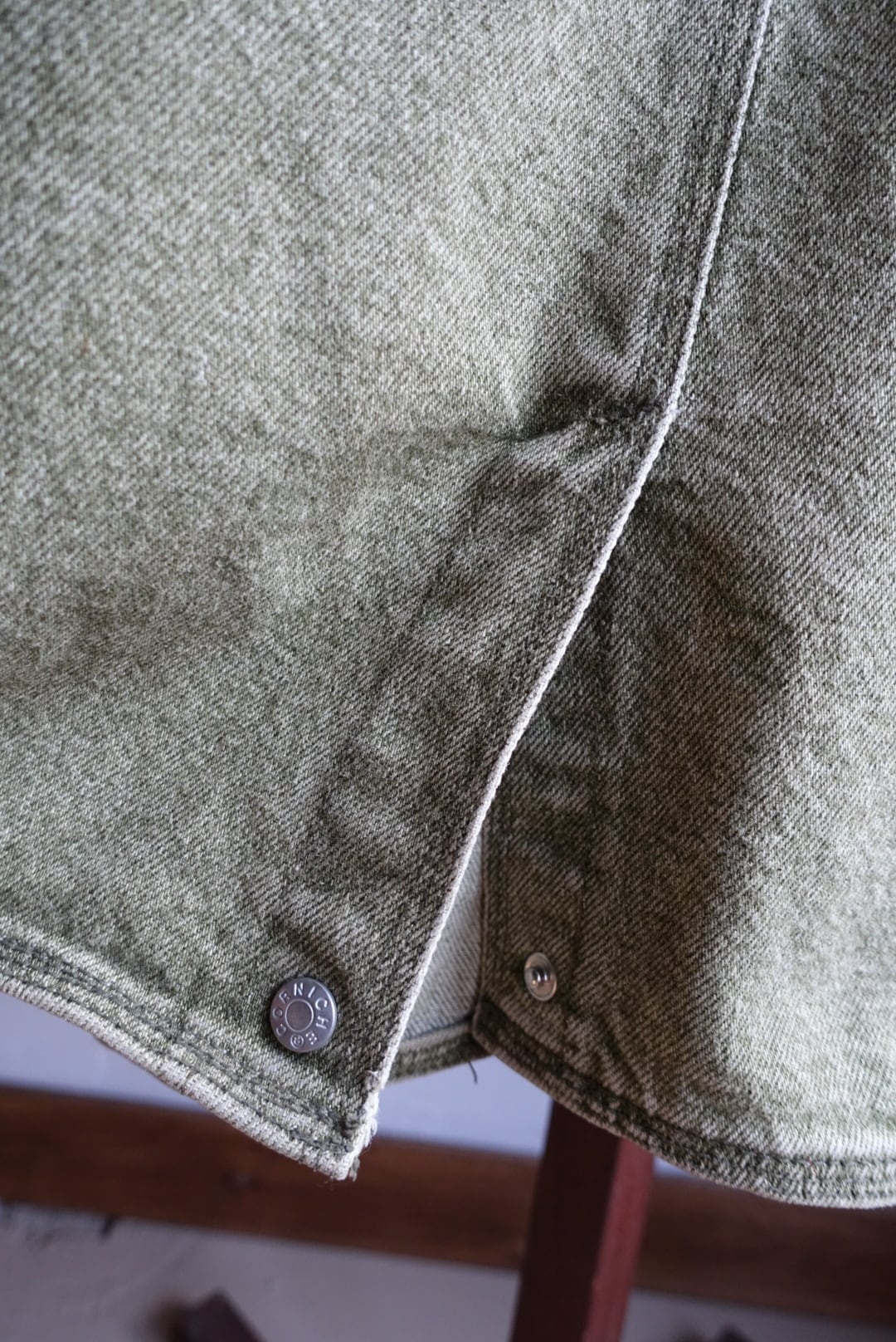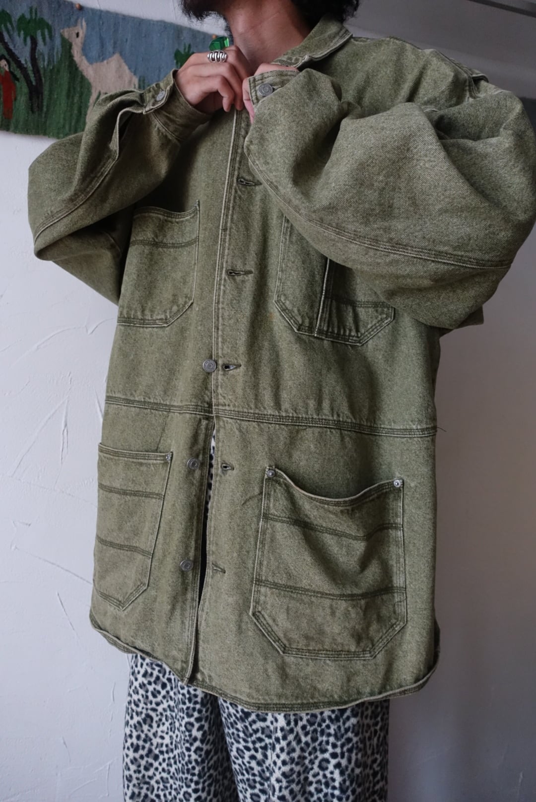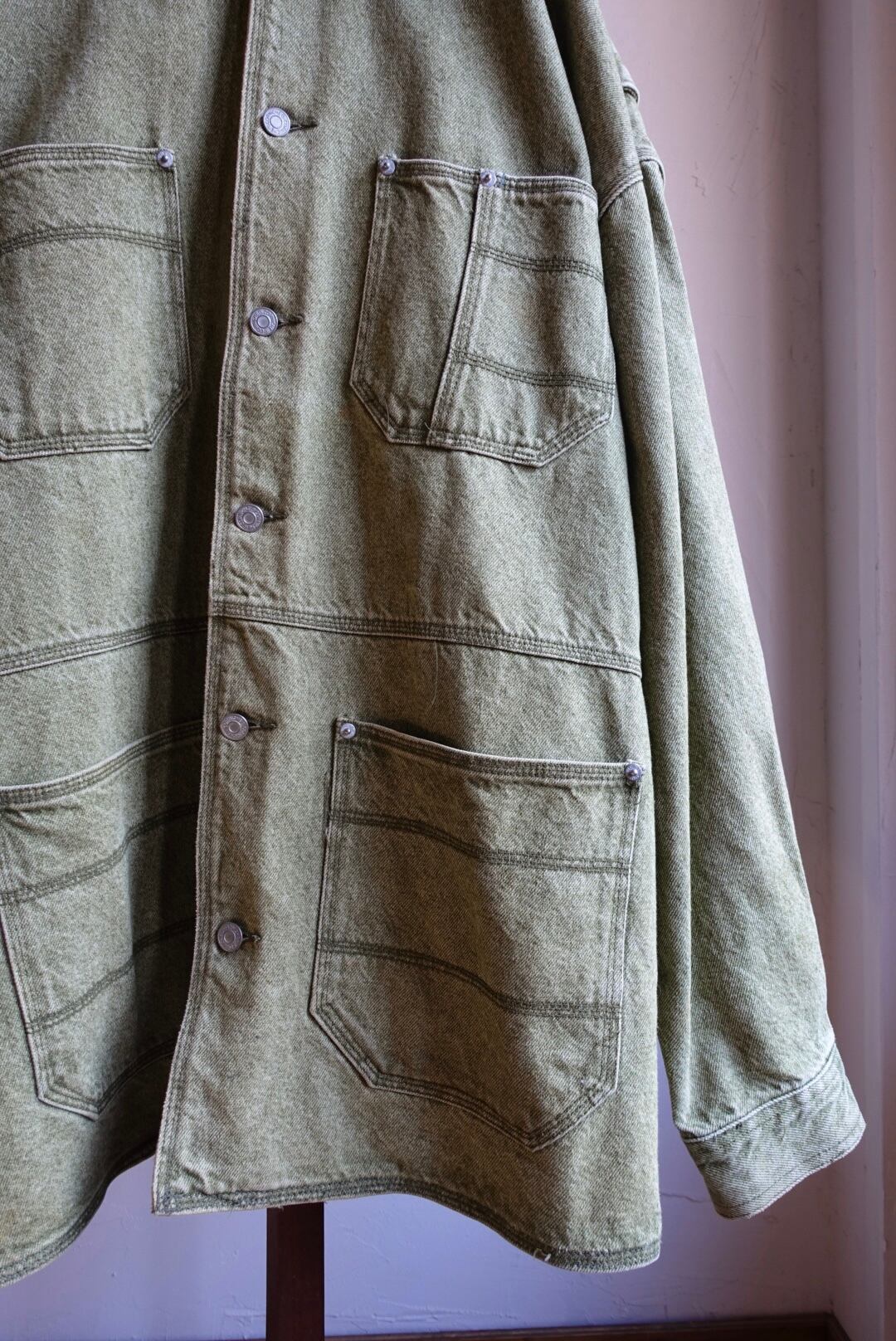杢グリーンのデニムカバーオール