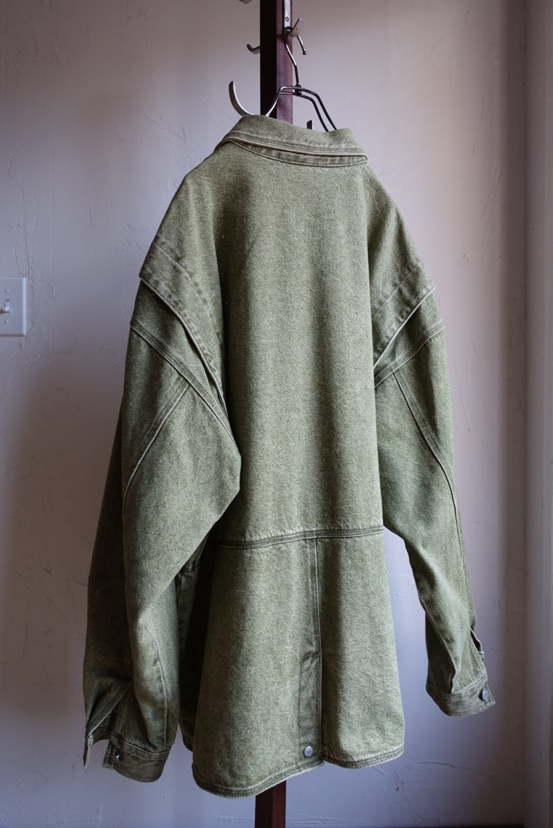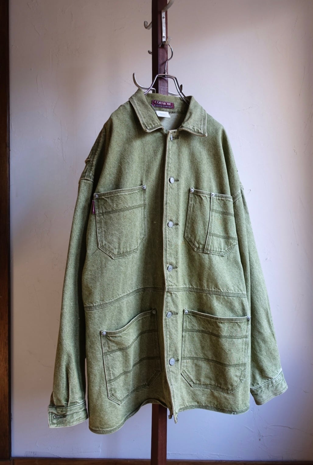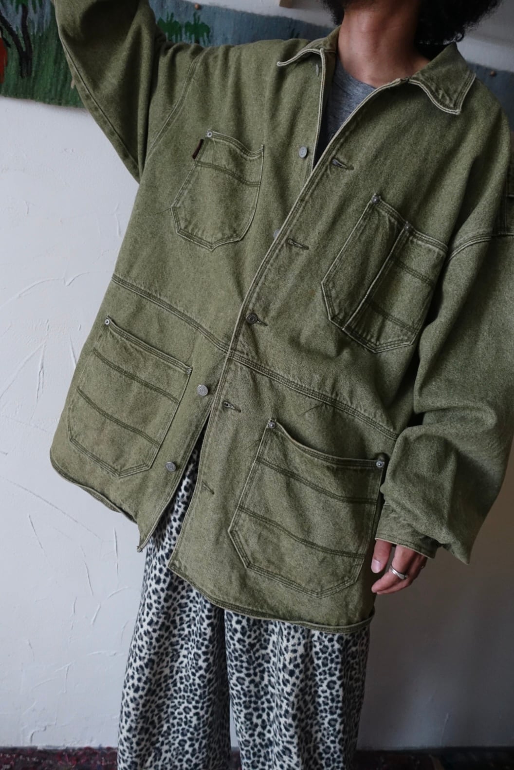 杢グリーンのデニムカバーオール