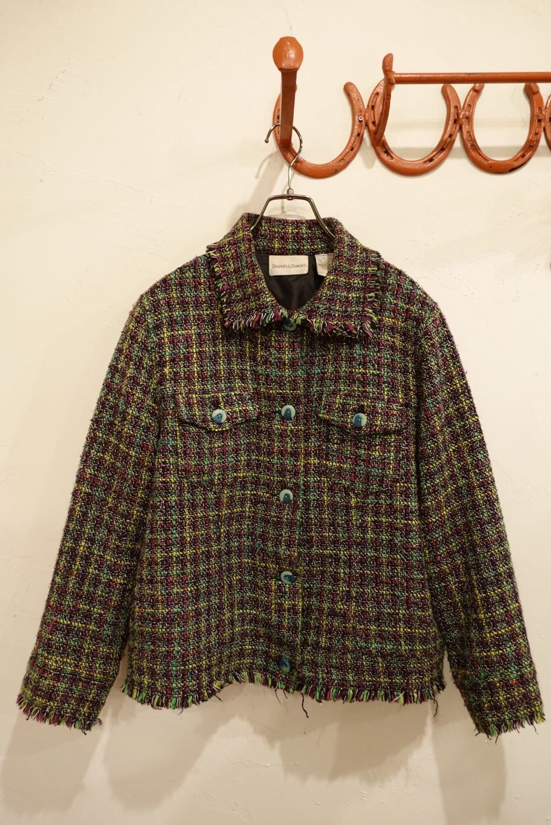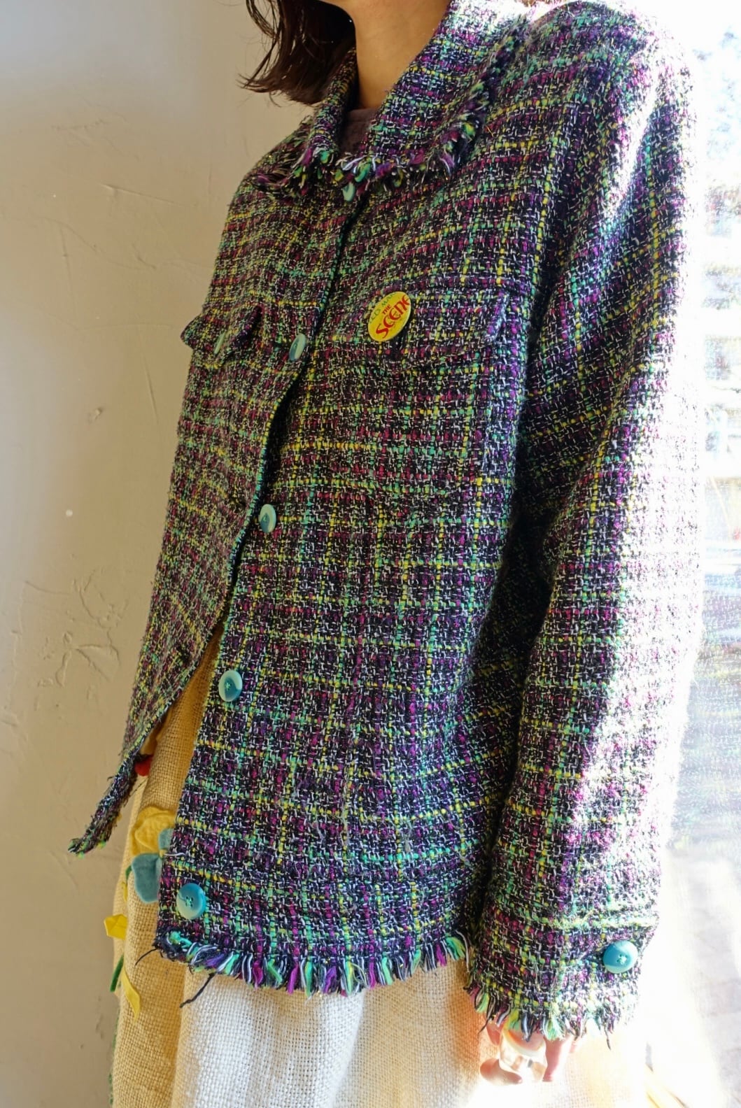 90s mix color tweed jacket