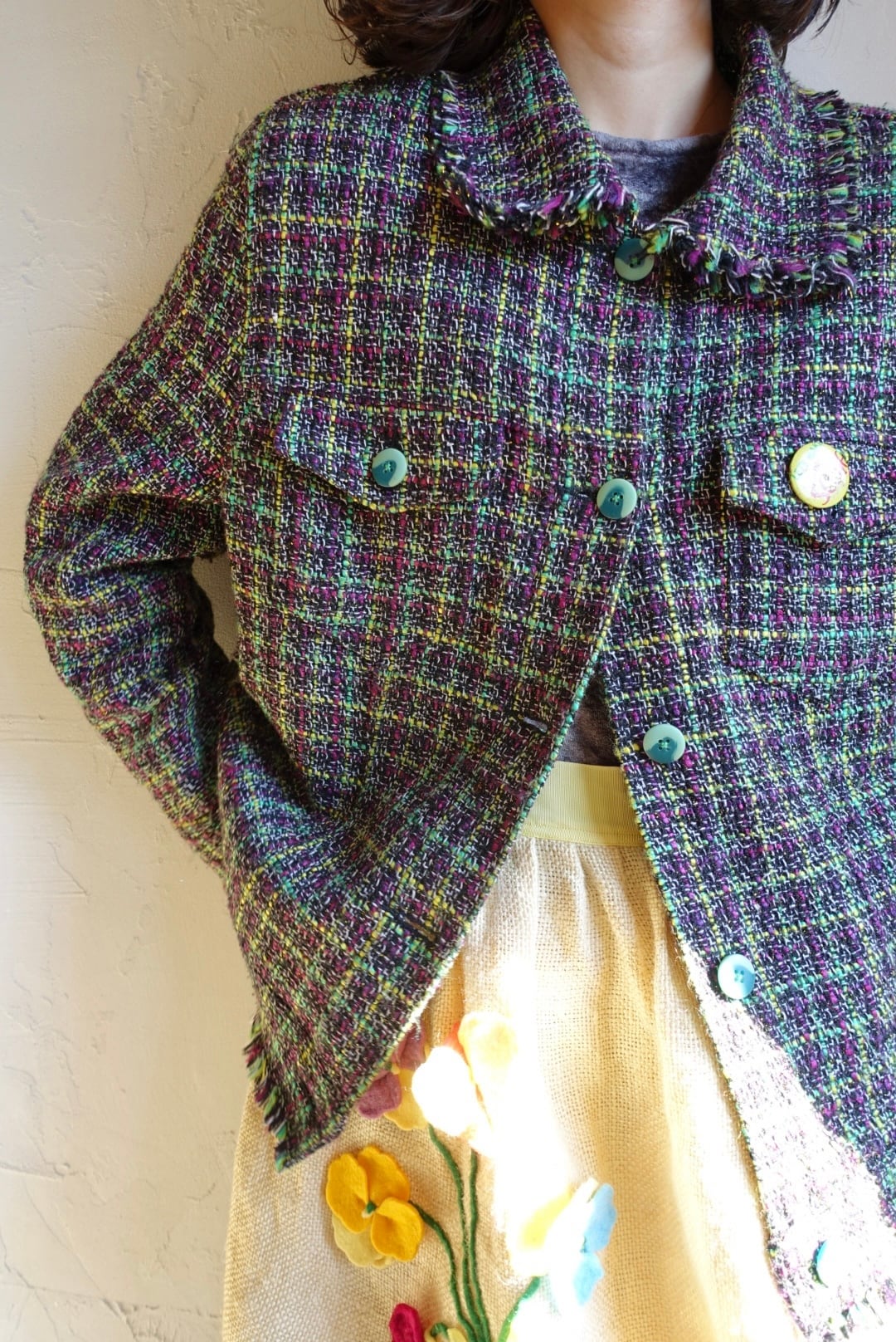 色合い綺麗なmixカラーツイードのライトジャケット