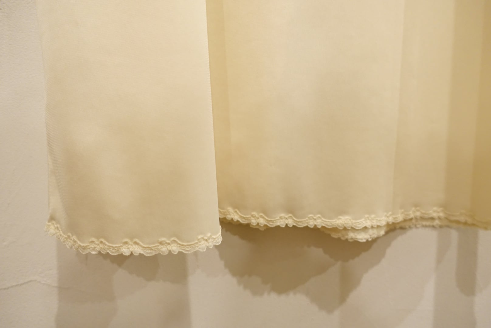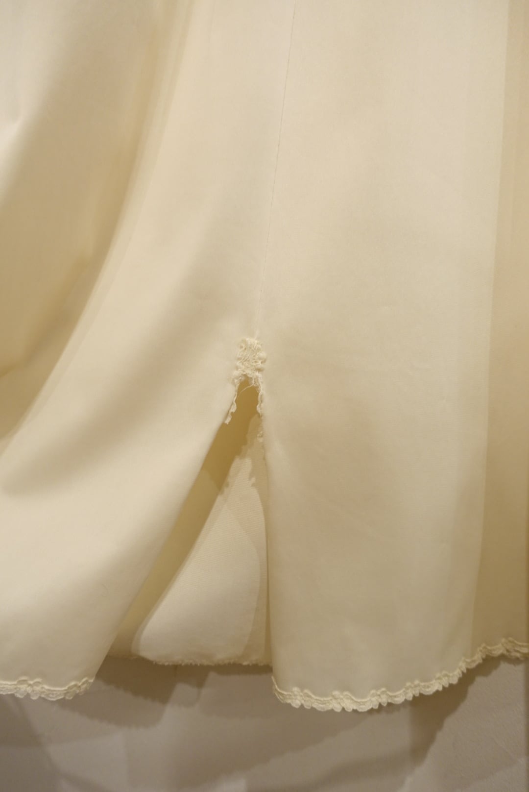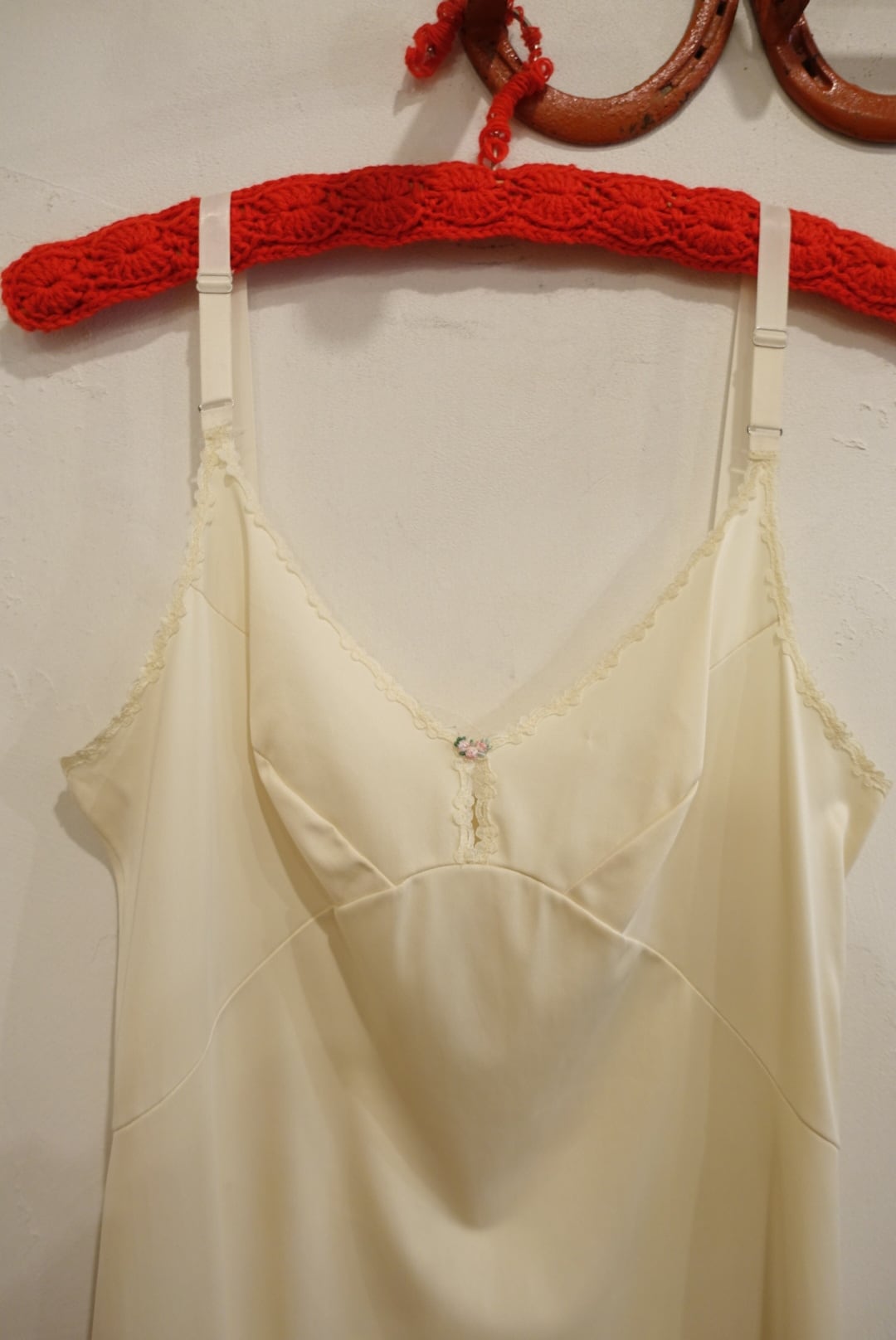 フロントのアーチ状のステッチがポイントとなるキャミワンピース。