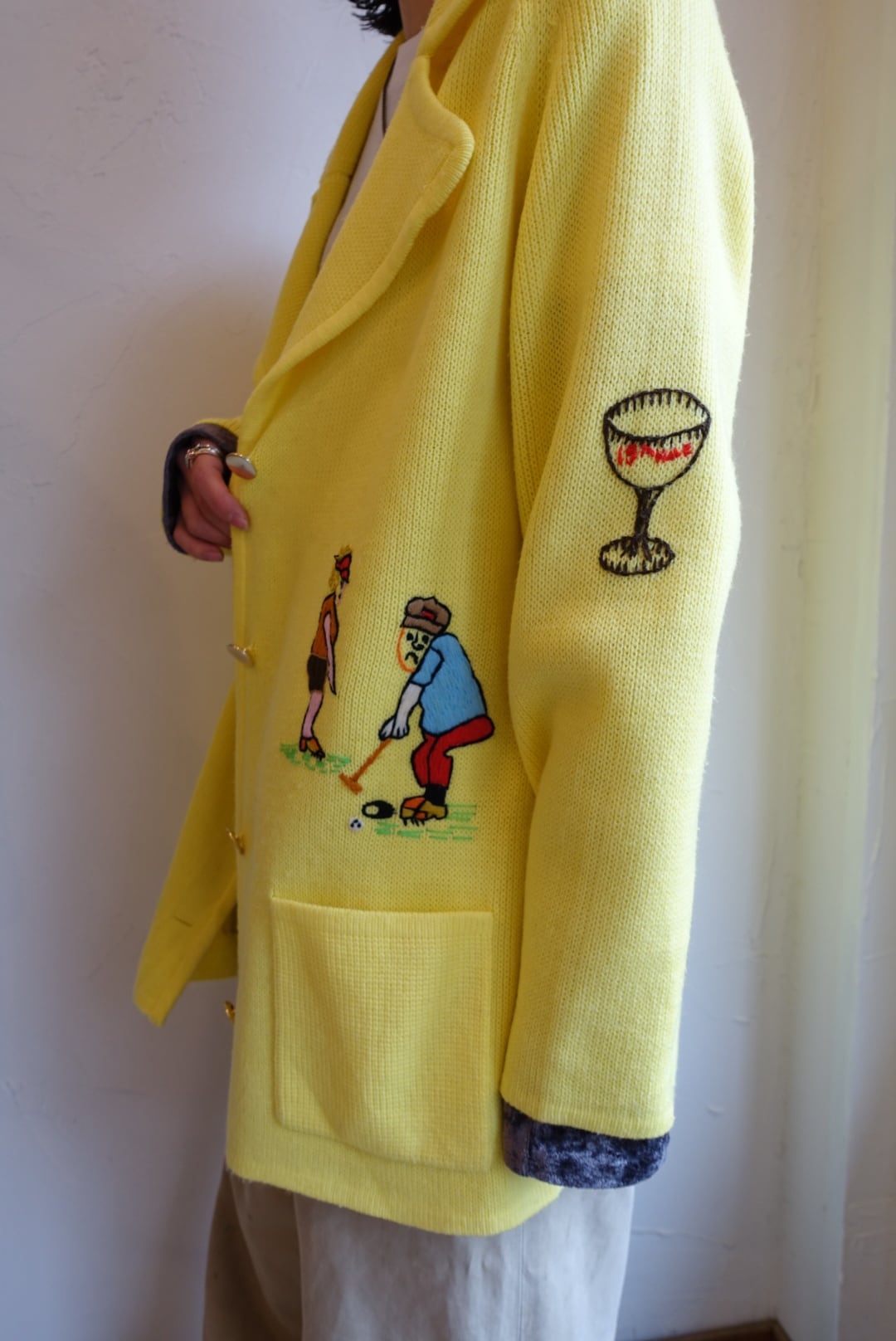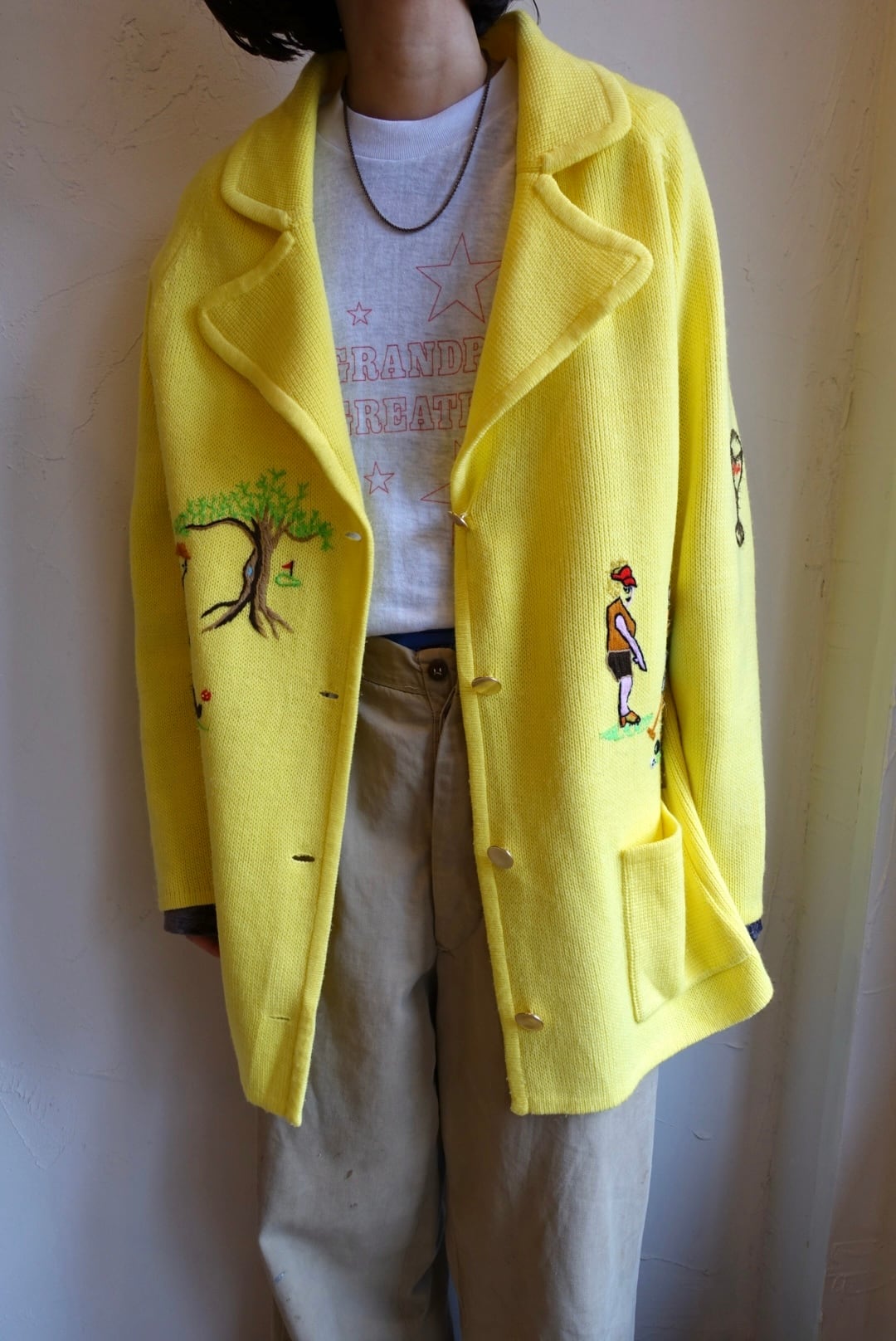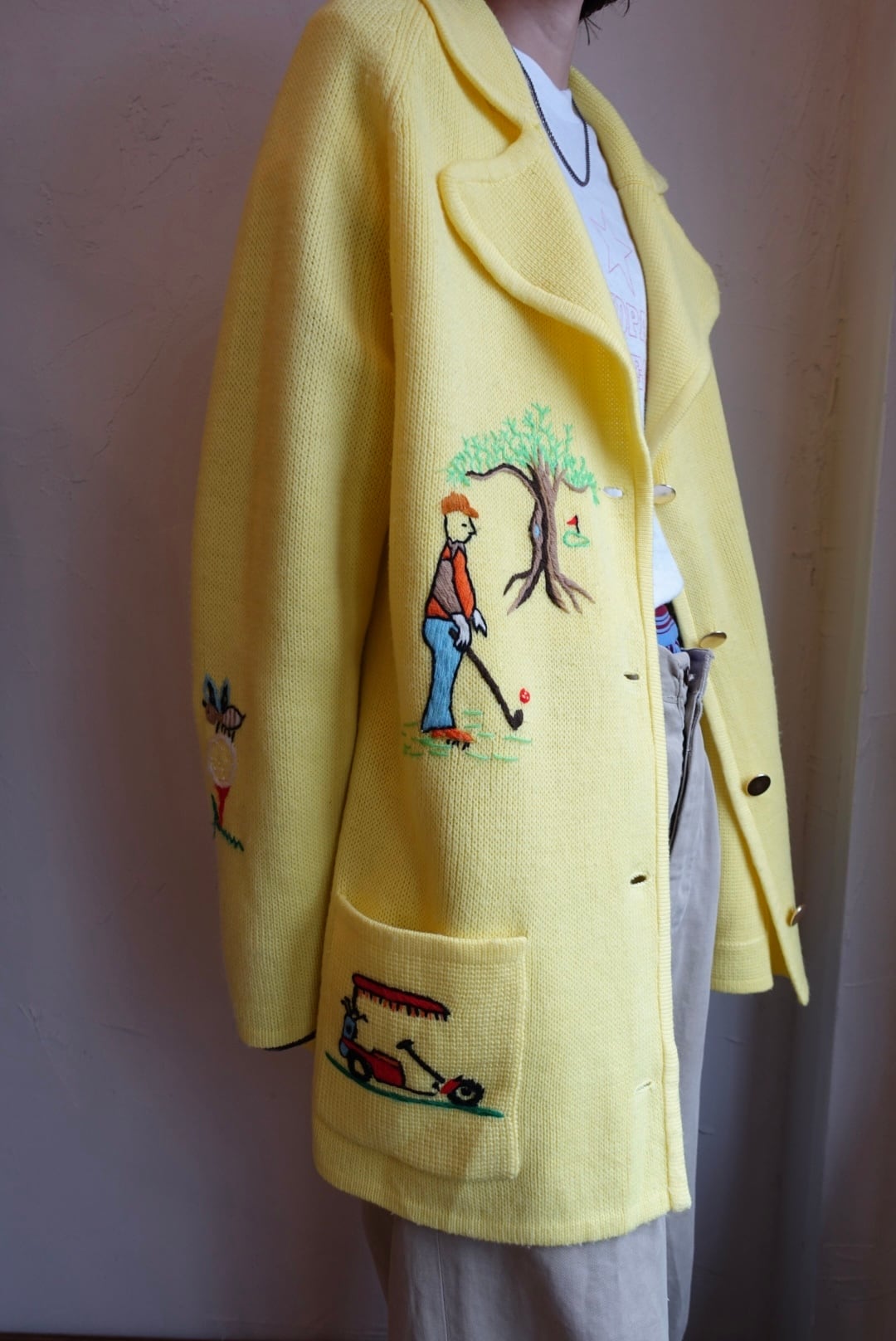愛らしい刺繍が全面に施された見応えたっぷりなニットジャケット