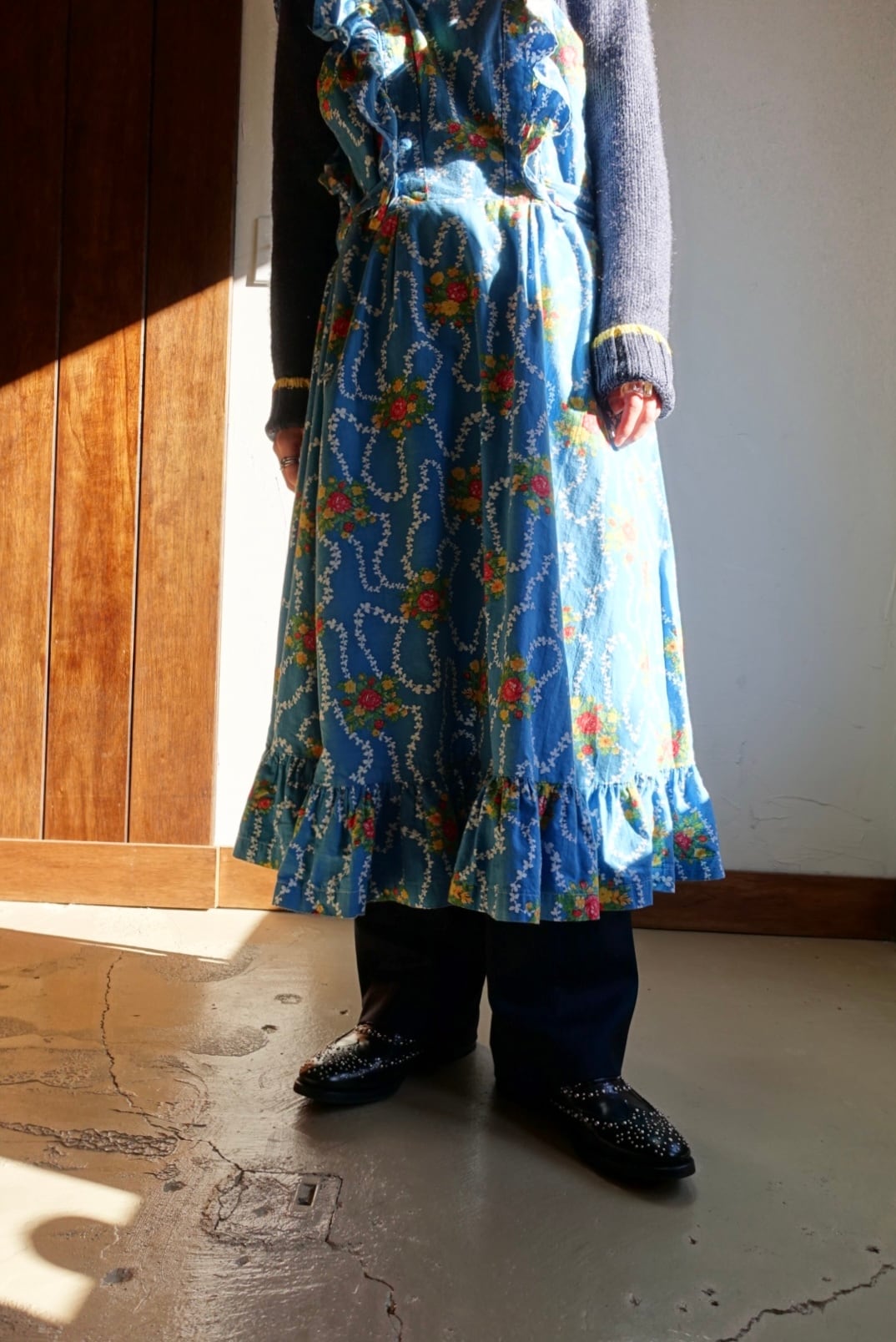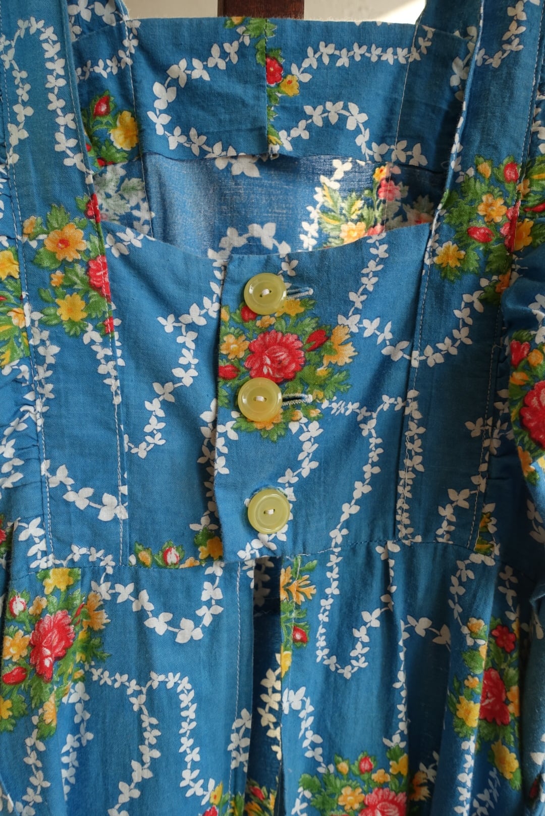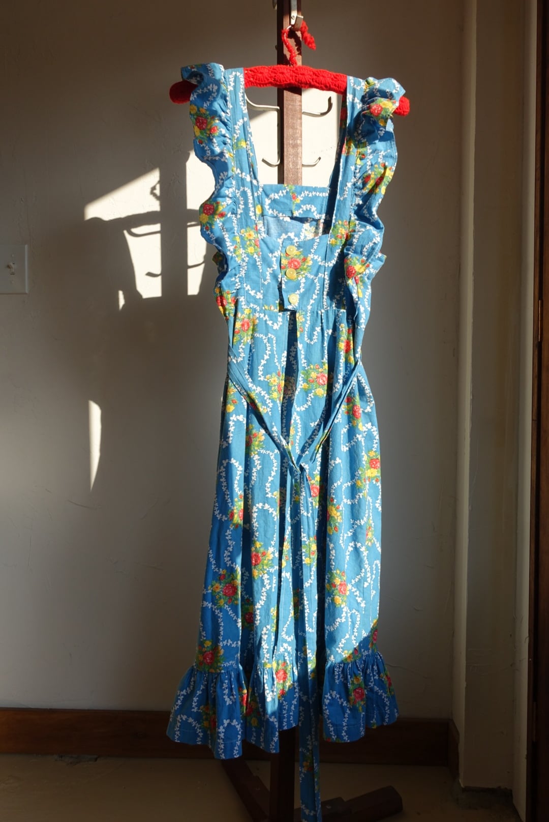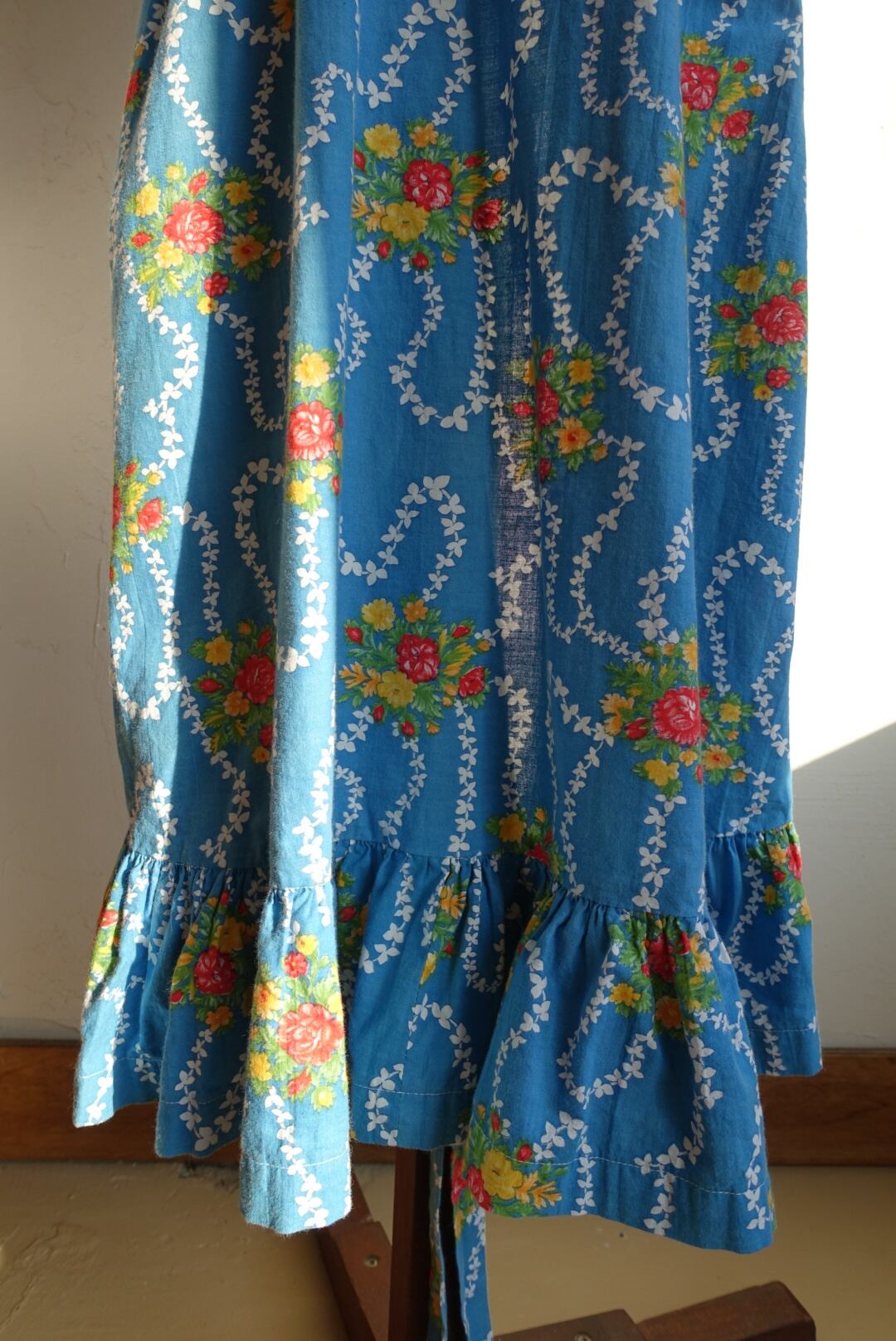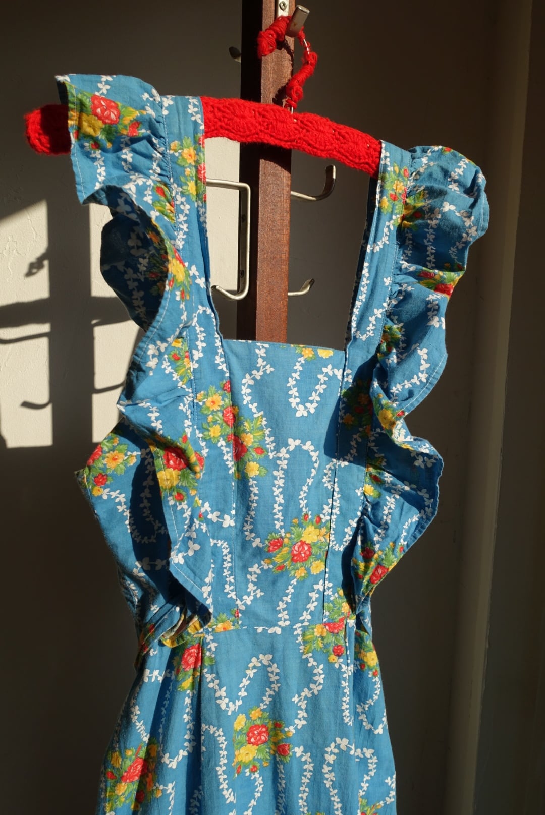 バックオープン仕様、エプロン型のコットンワンピース 70s