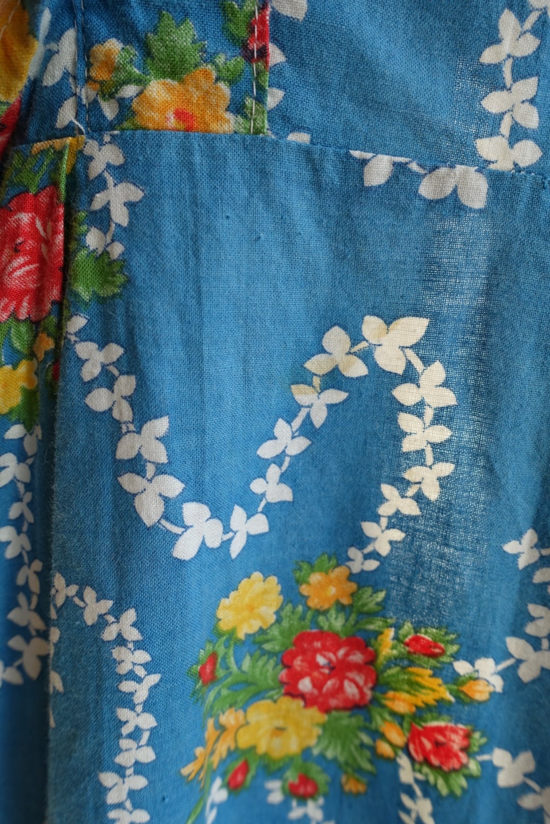 少し色が褪せて、柔らかい発色かつレトロさが心地良い花柄のテキスタイル