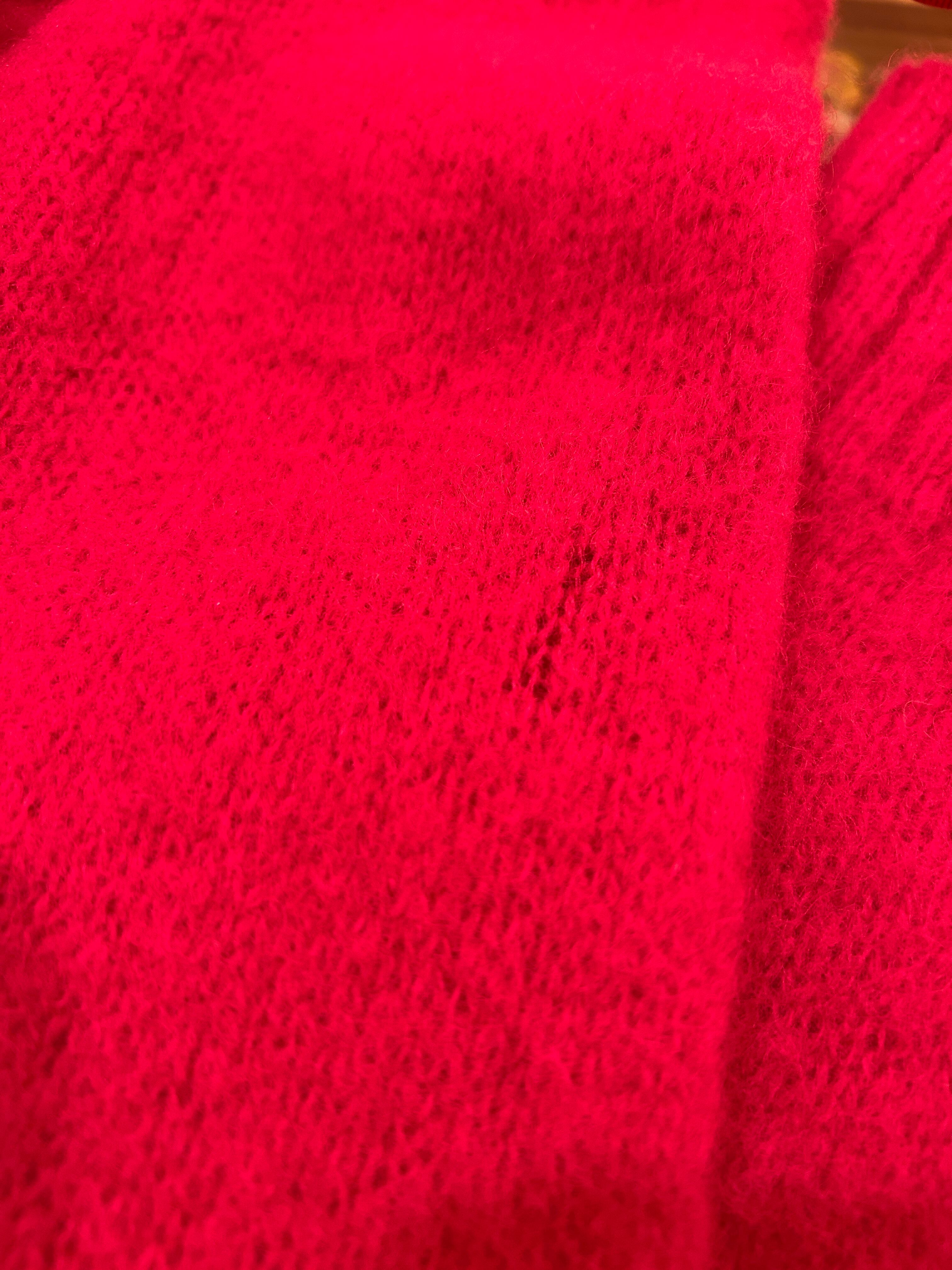 身頃お腹付近や袖などに小さなリペアや、生地の薄れ、小さなホツレなどが見られます。