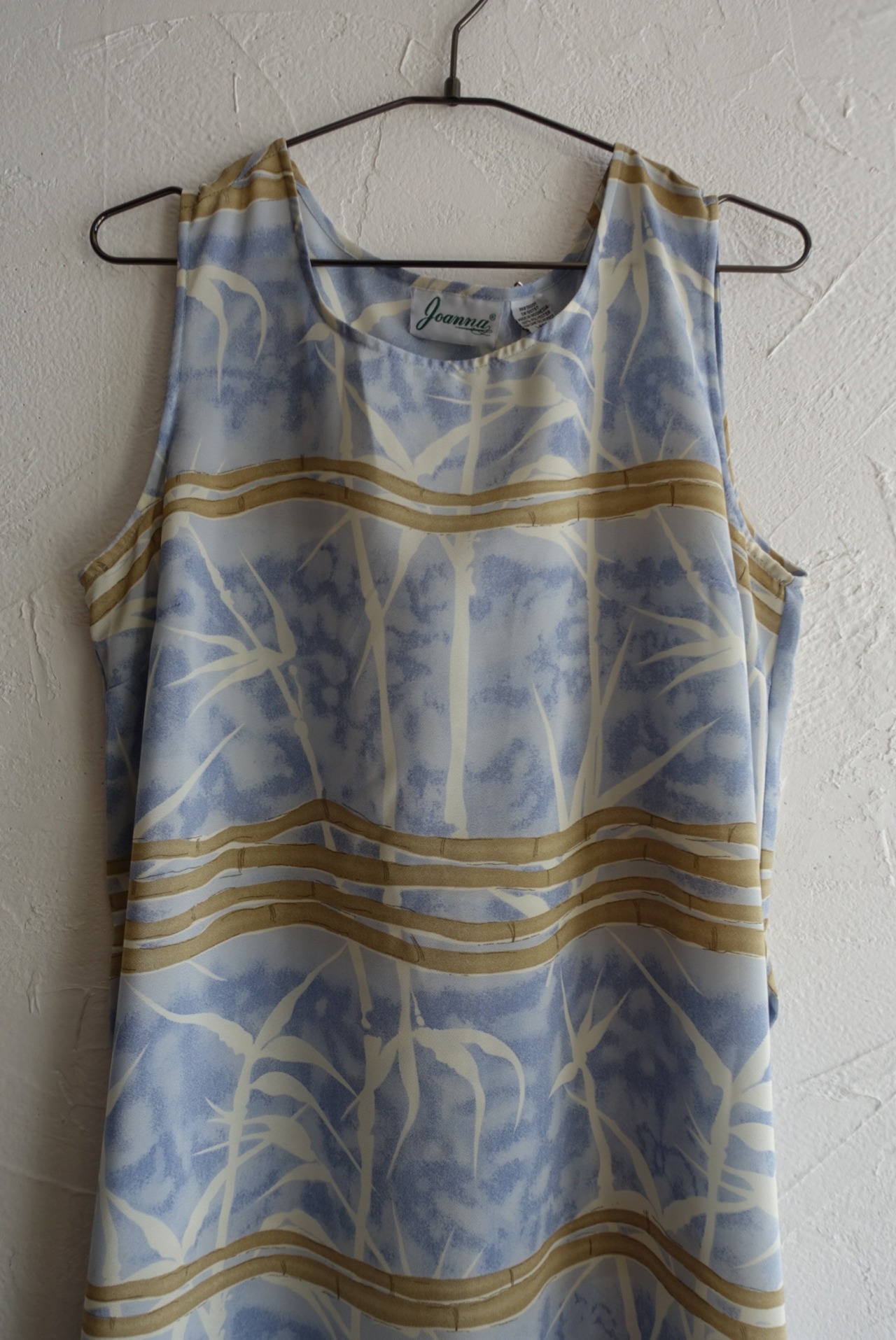 意外性のあるバンブーモチーフの柄が魅力のノースリーブワンピース。