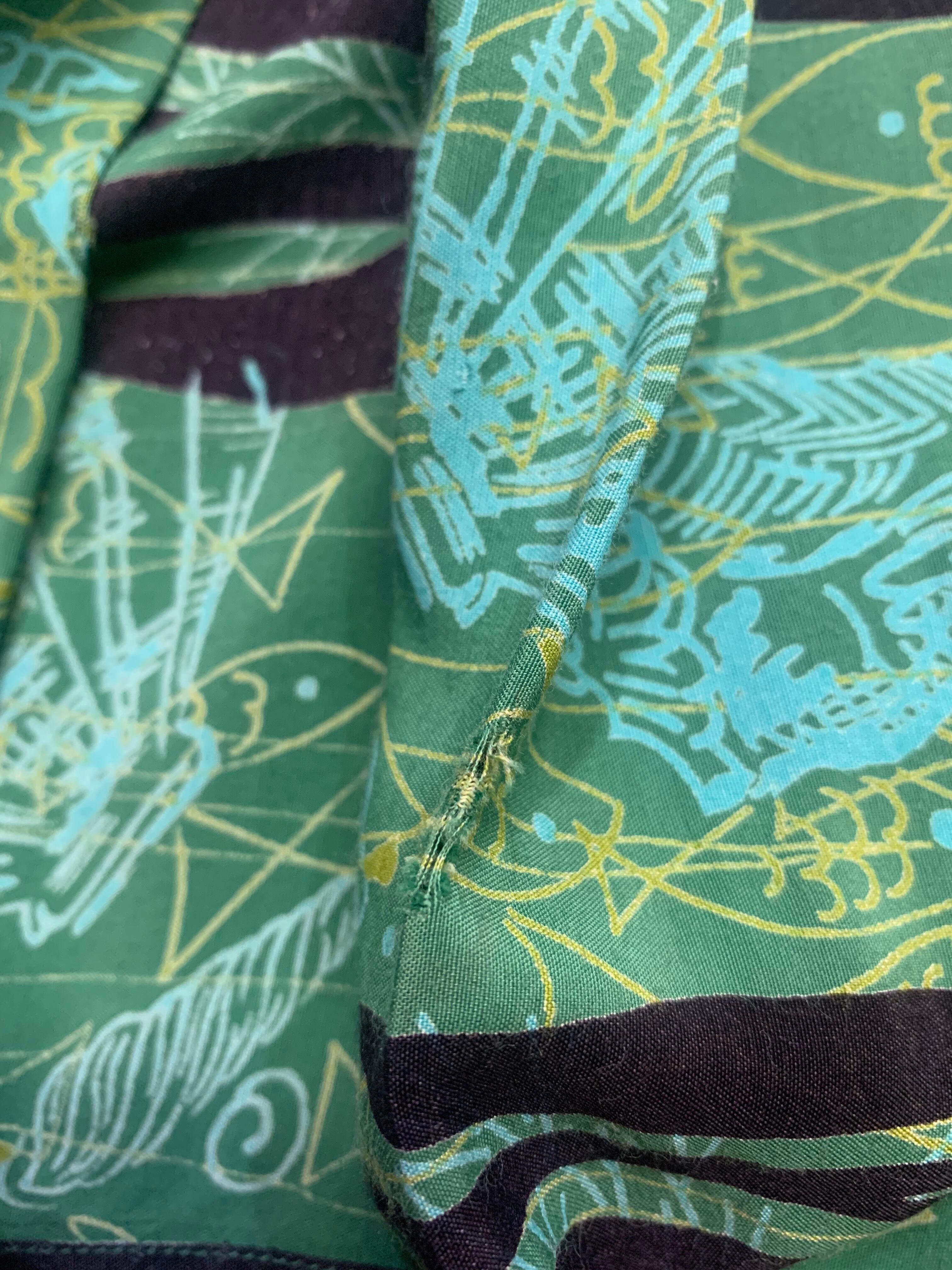 フロント第6ボタン下、裾付近に小穴/ダメージ、リペアがございます。