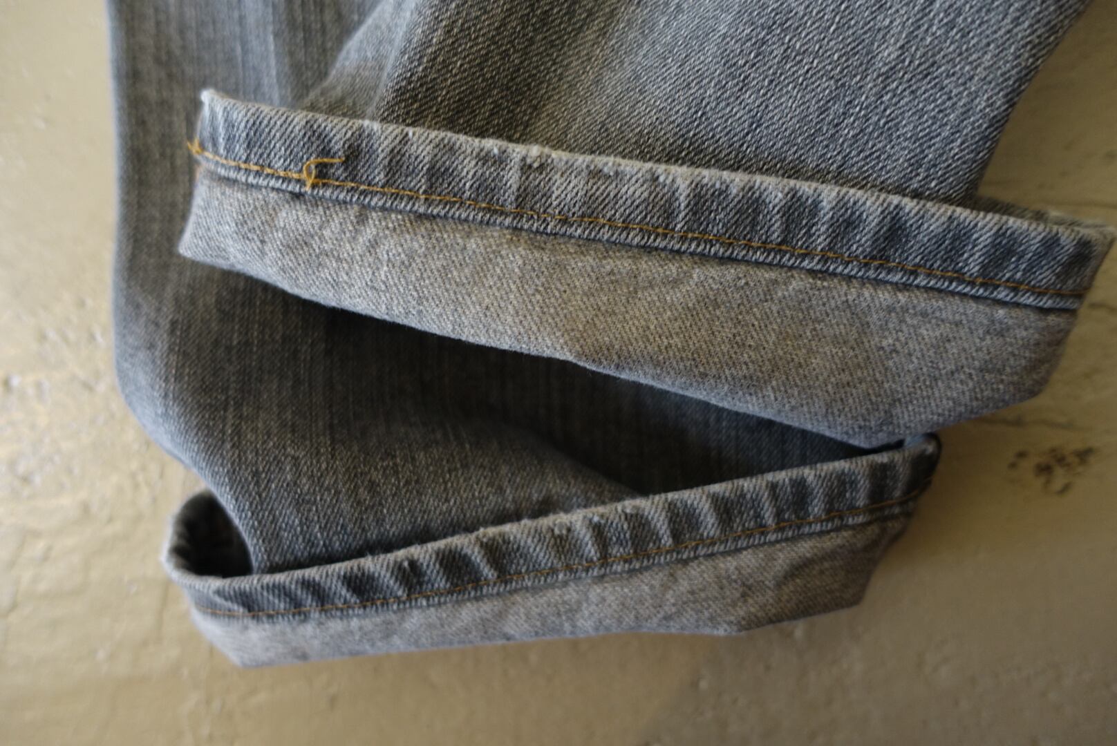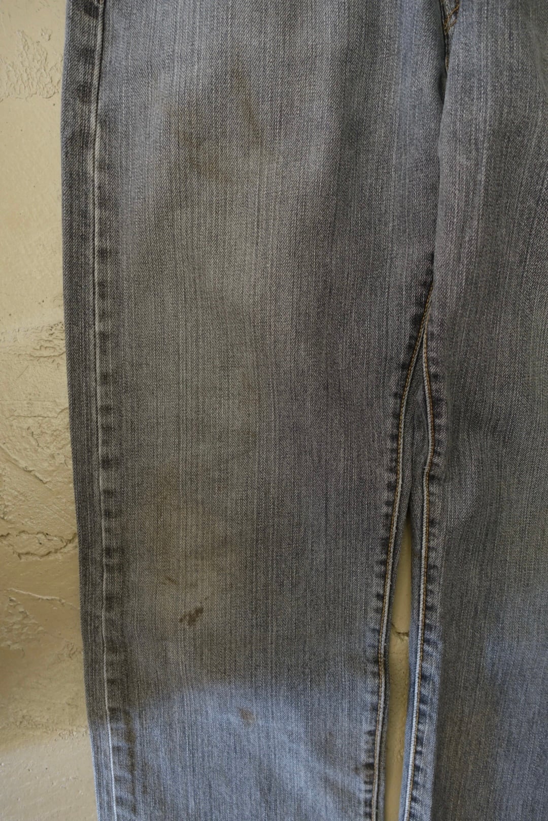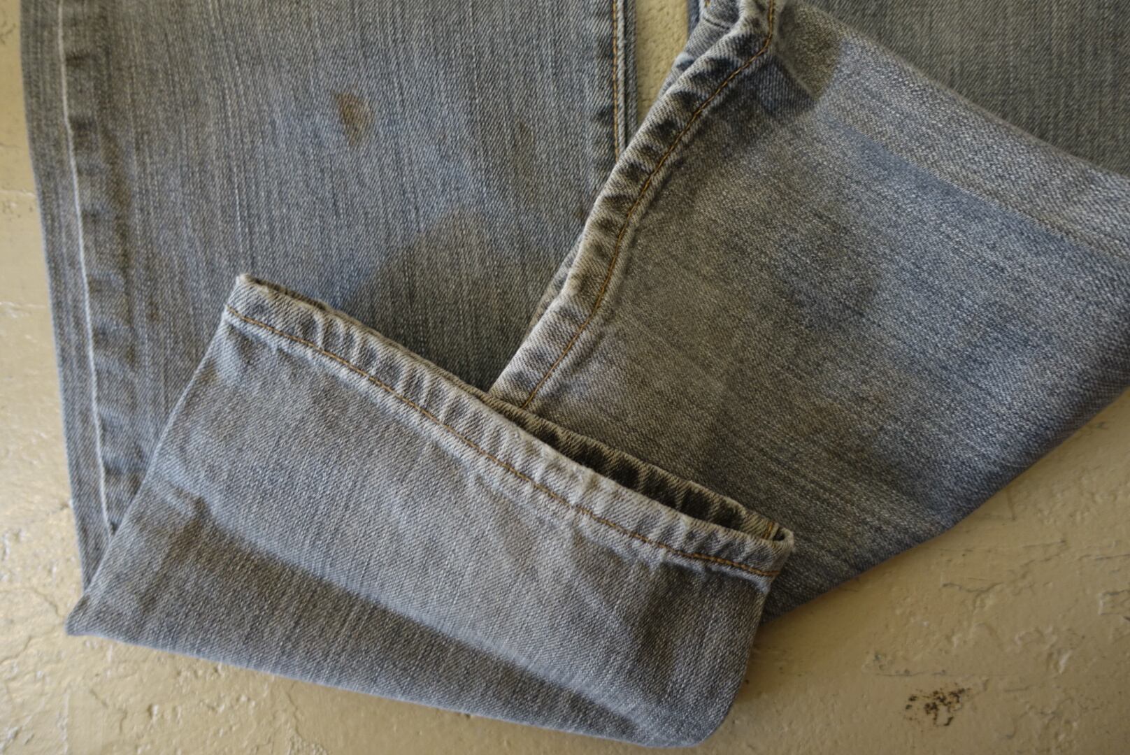 アイスグレーの色落ちに茶系のヨゴレなどが混じり