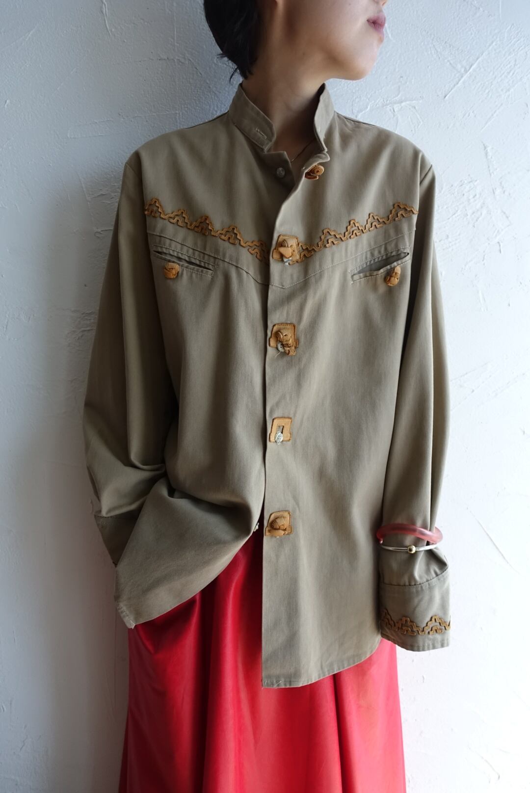第4ボタンのレザーパーツがひとつ欠損しております。