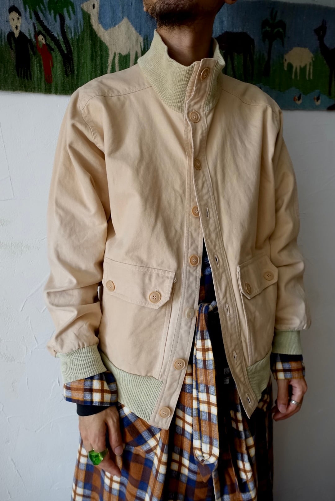 ガシッとしたタフなコットンのA-1型のハイネックリブジャケット。