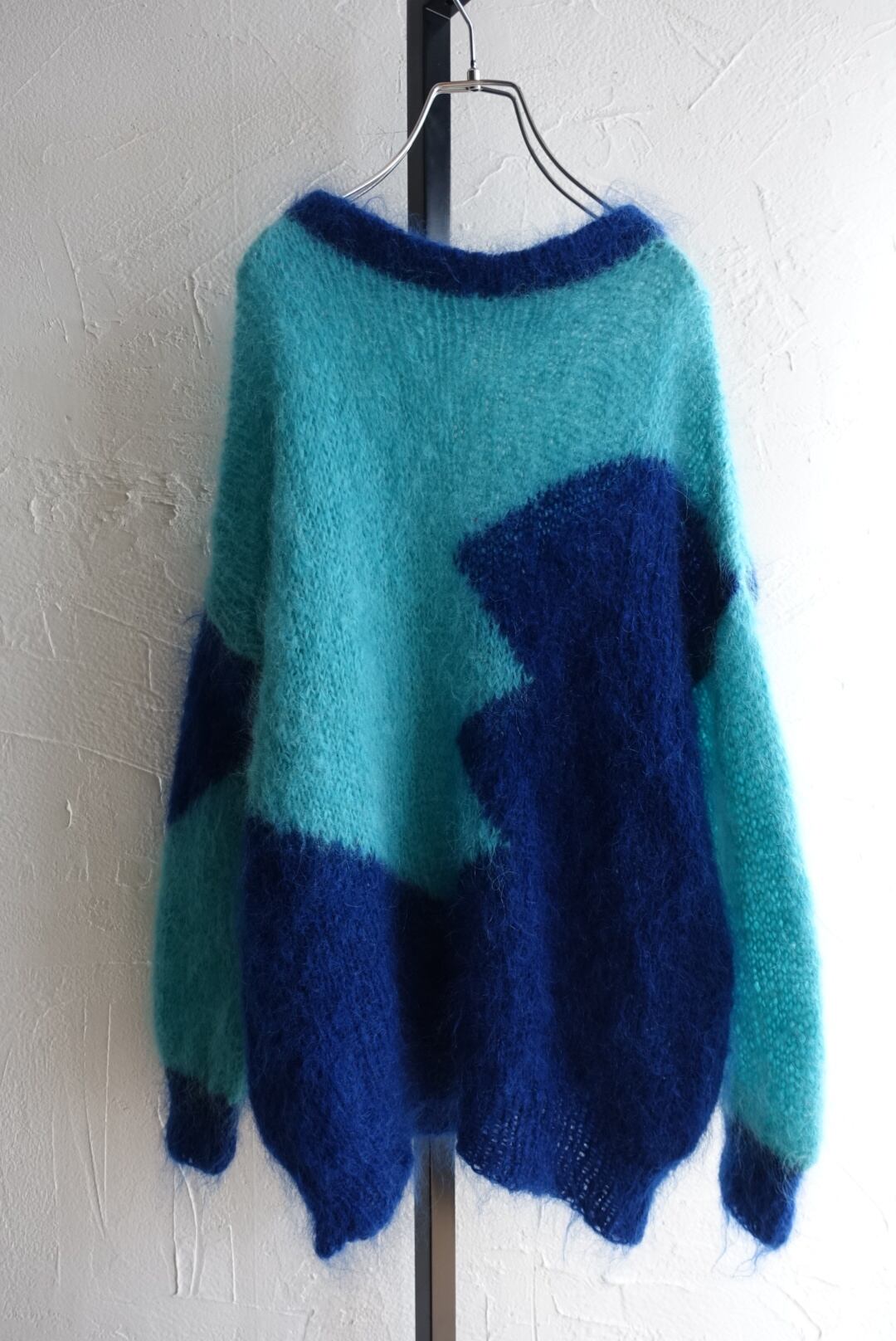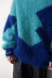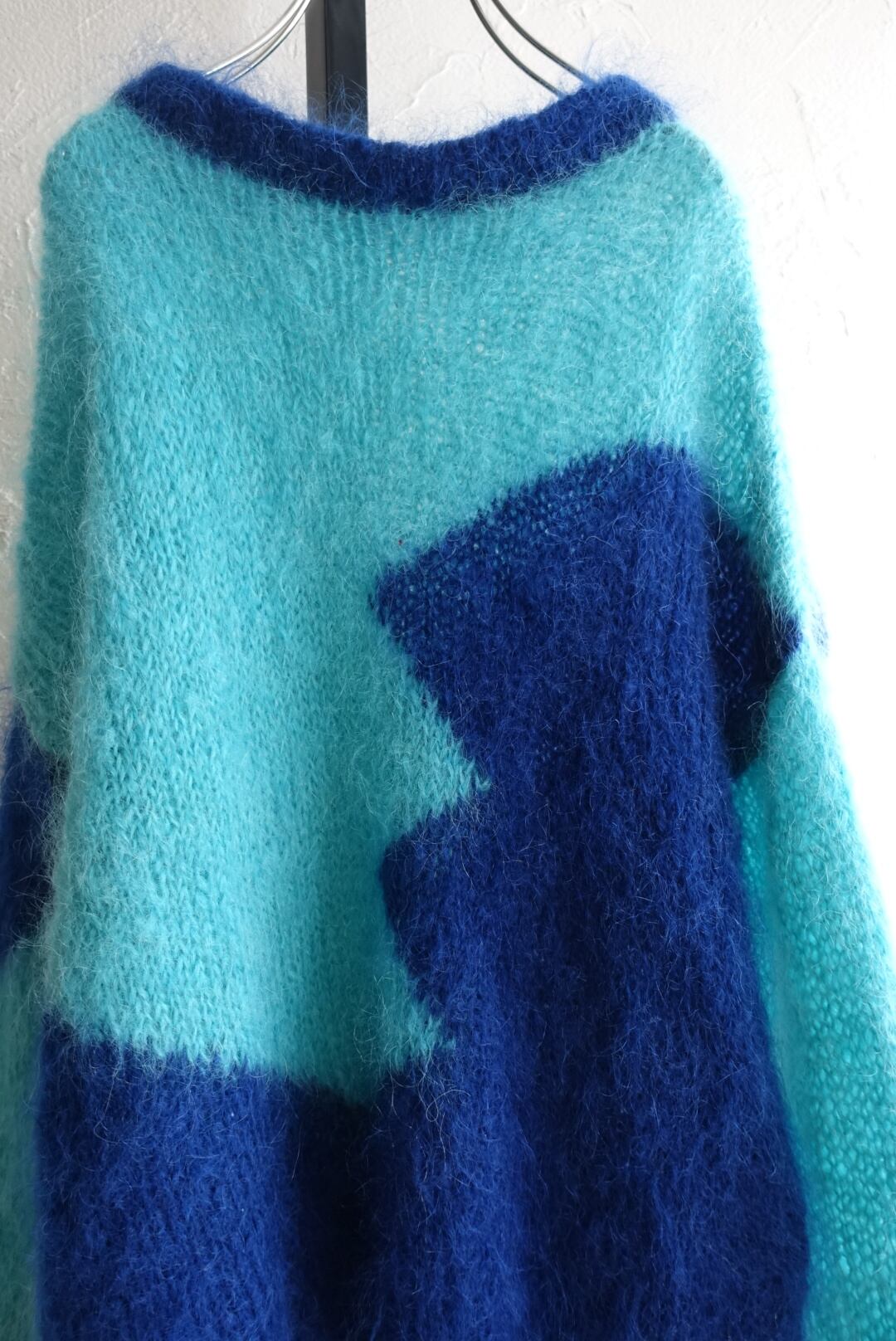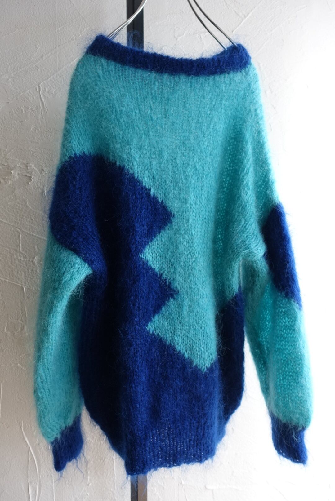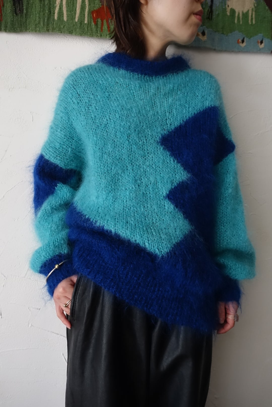 ブルー構成の綺麗な色目が魅力のビンテージモヘアニット