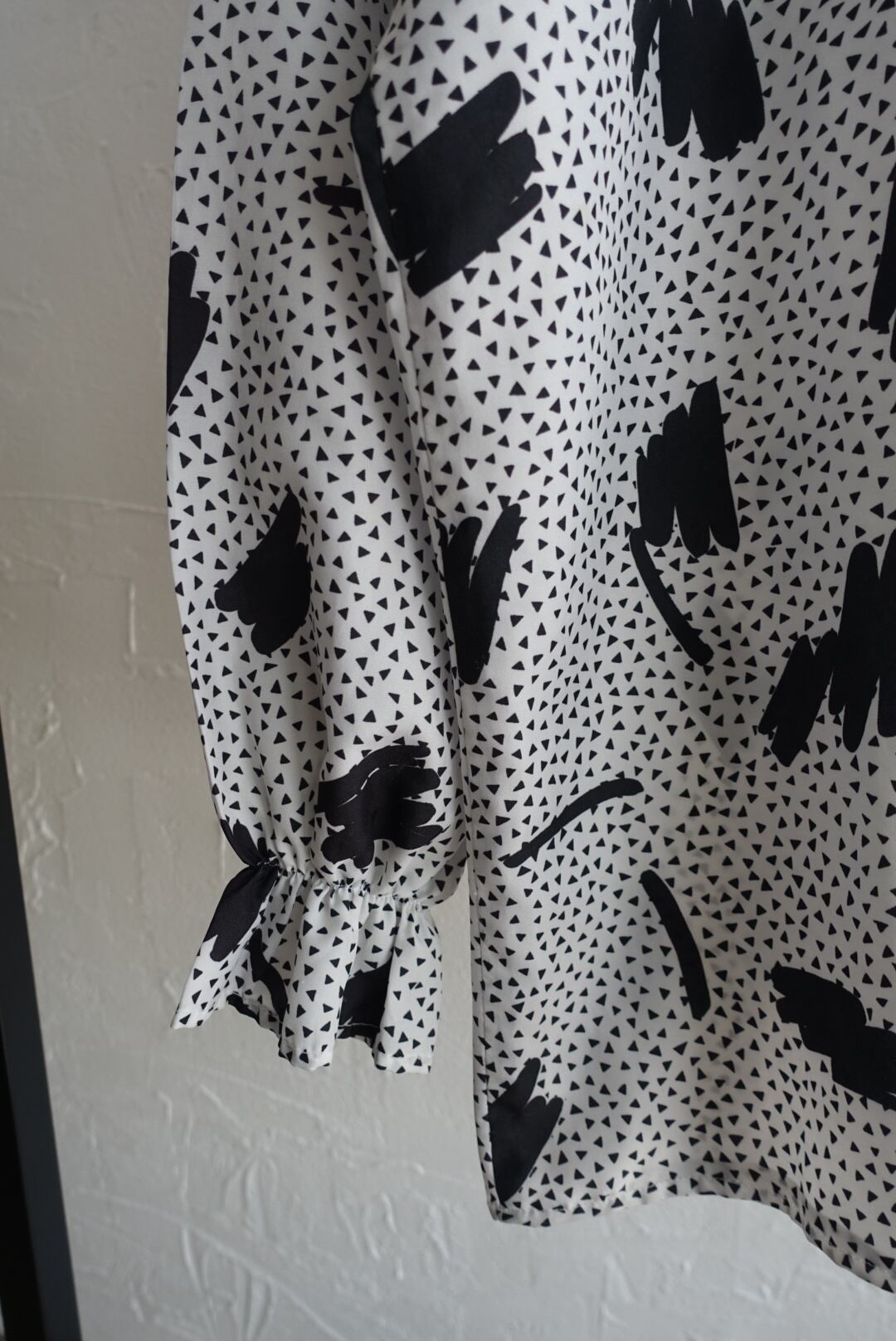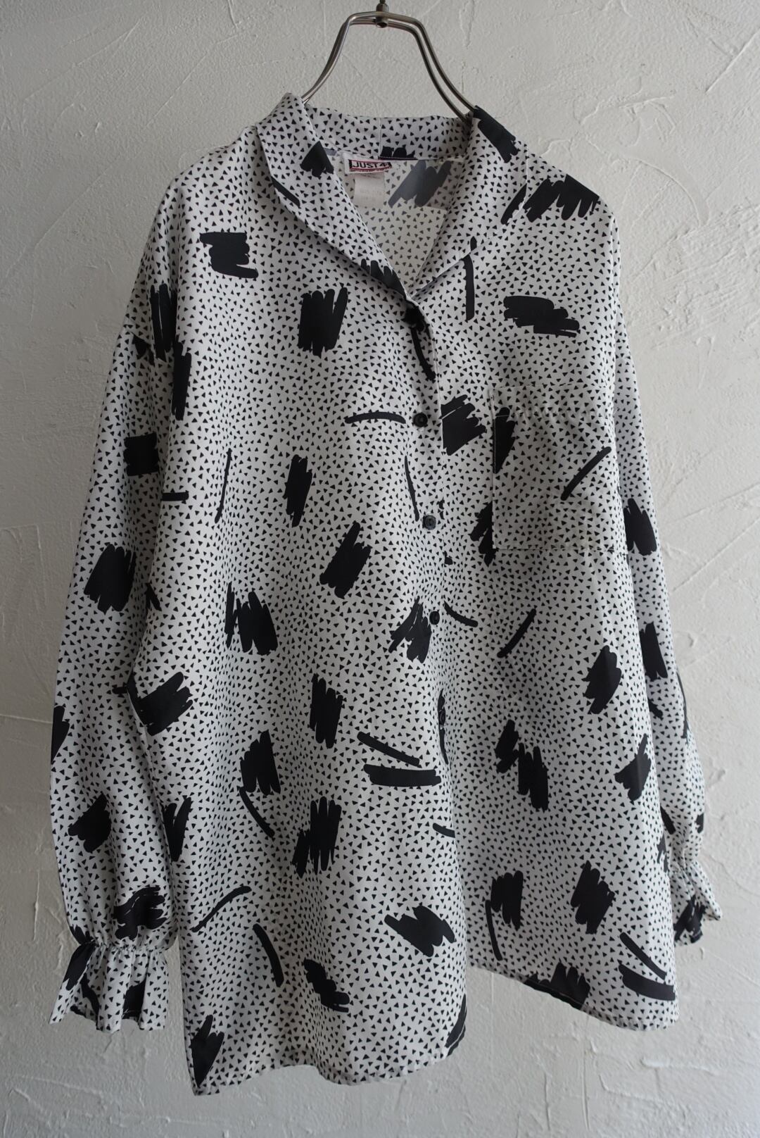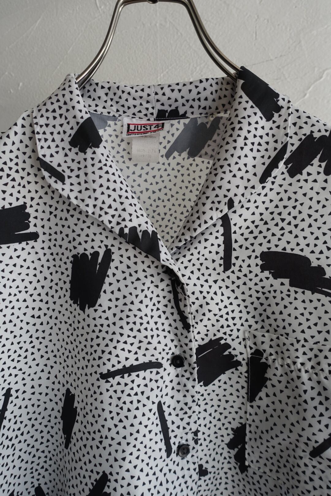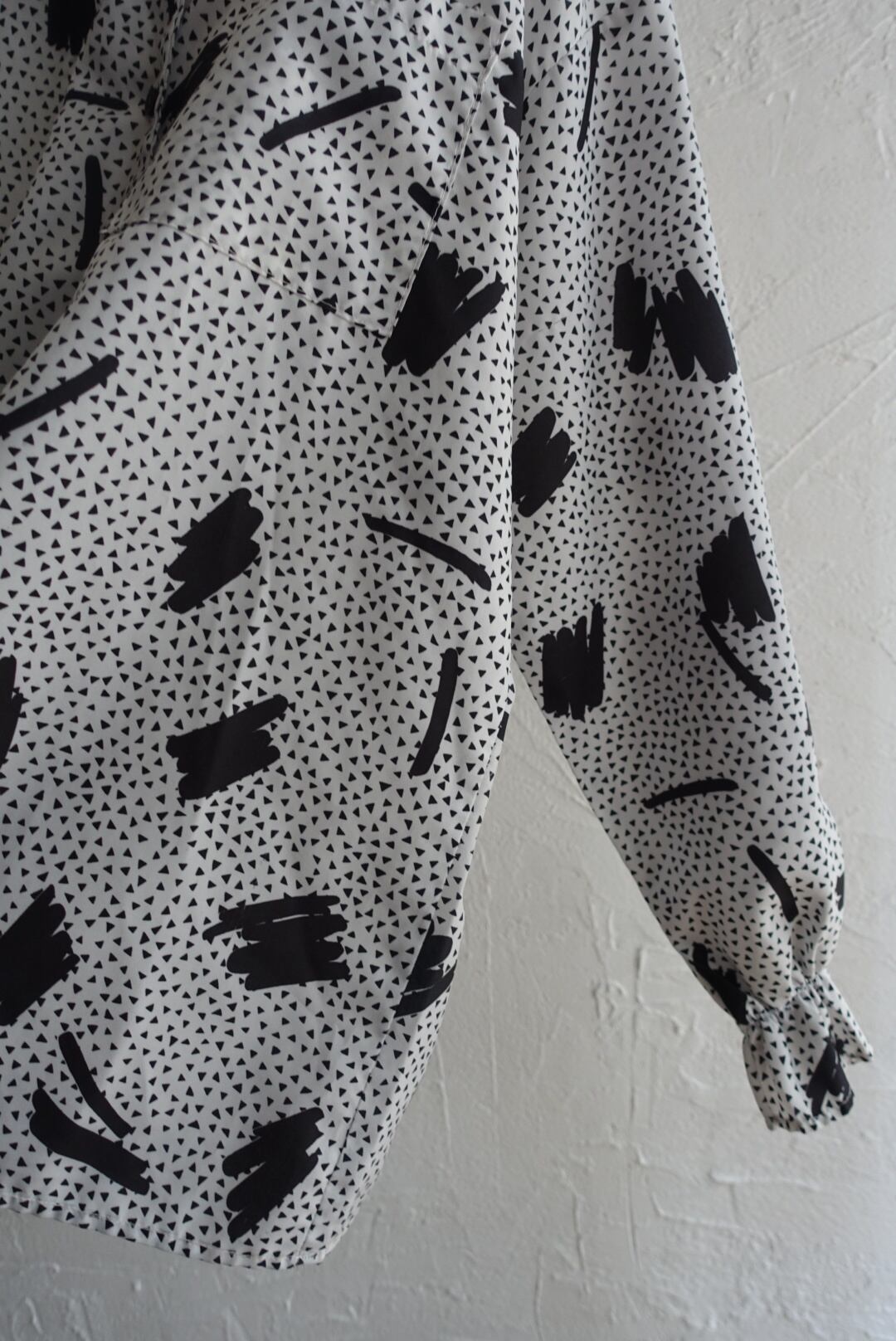 細かな三角形と落書きのような面白い柄の80sブラウス