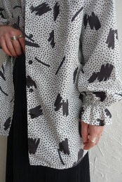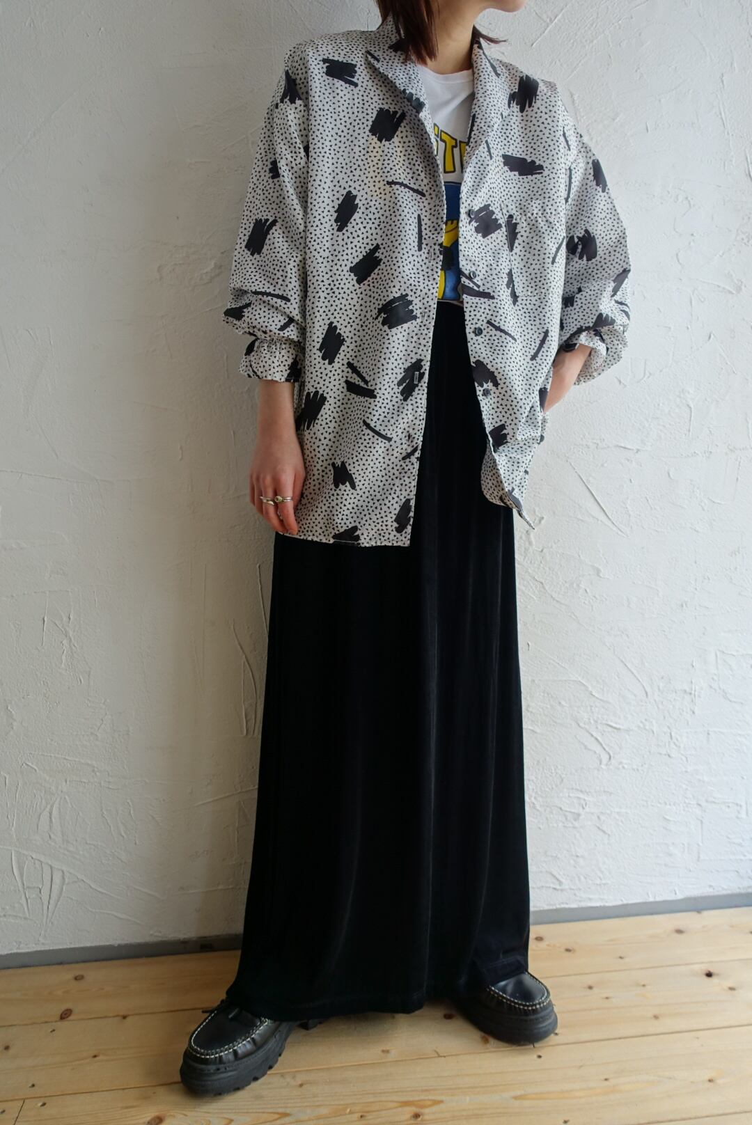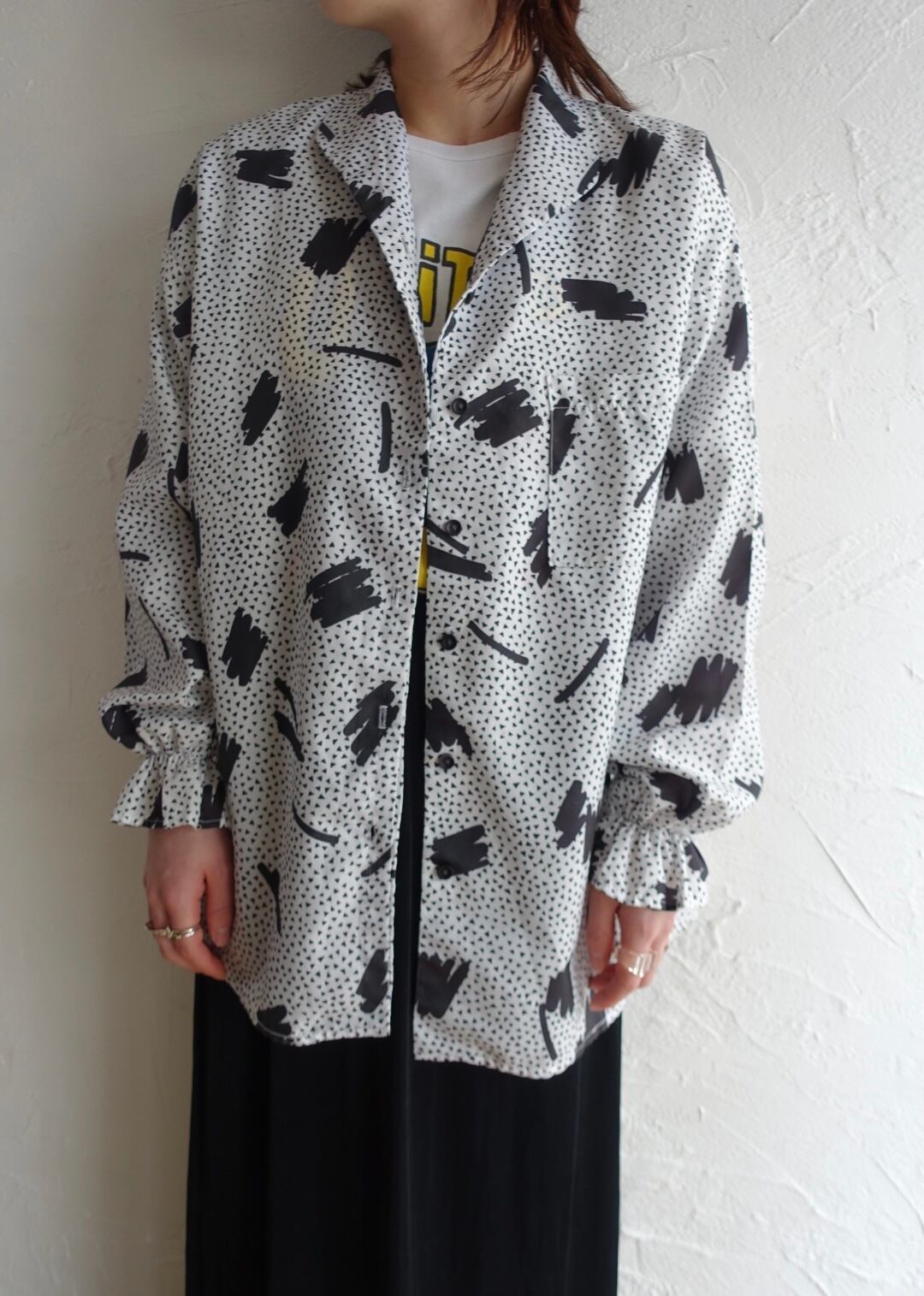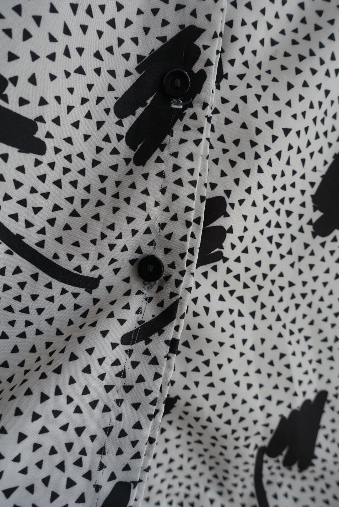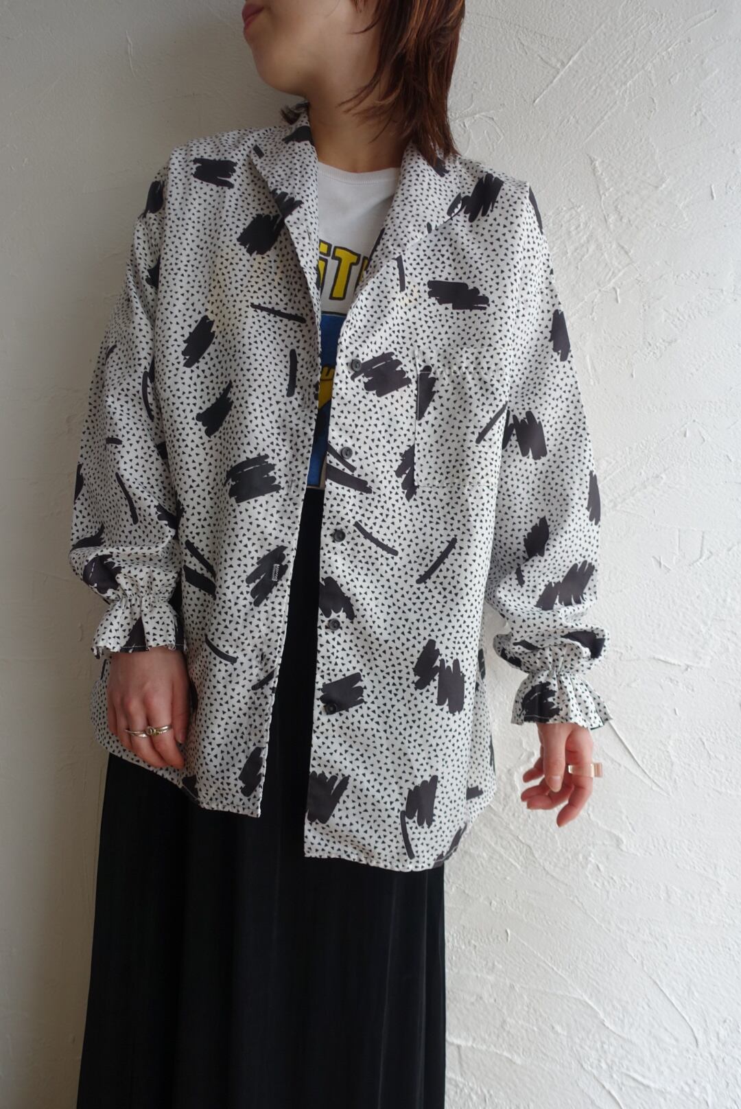 細かな三角形と落書きのような面白い柄の80sブラウス