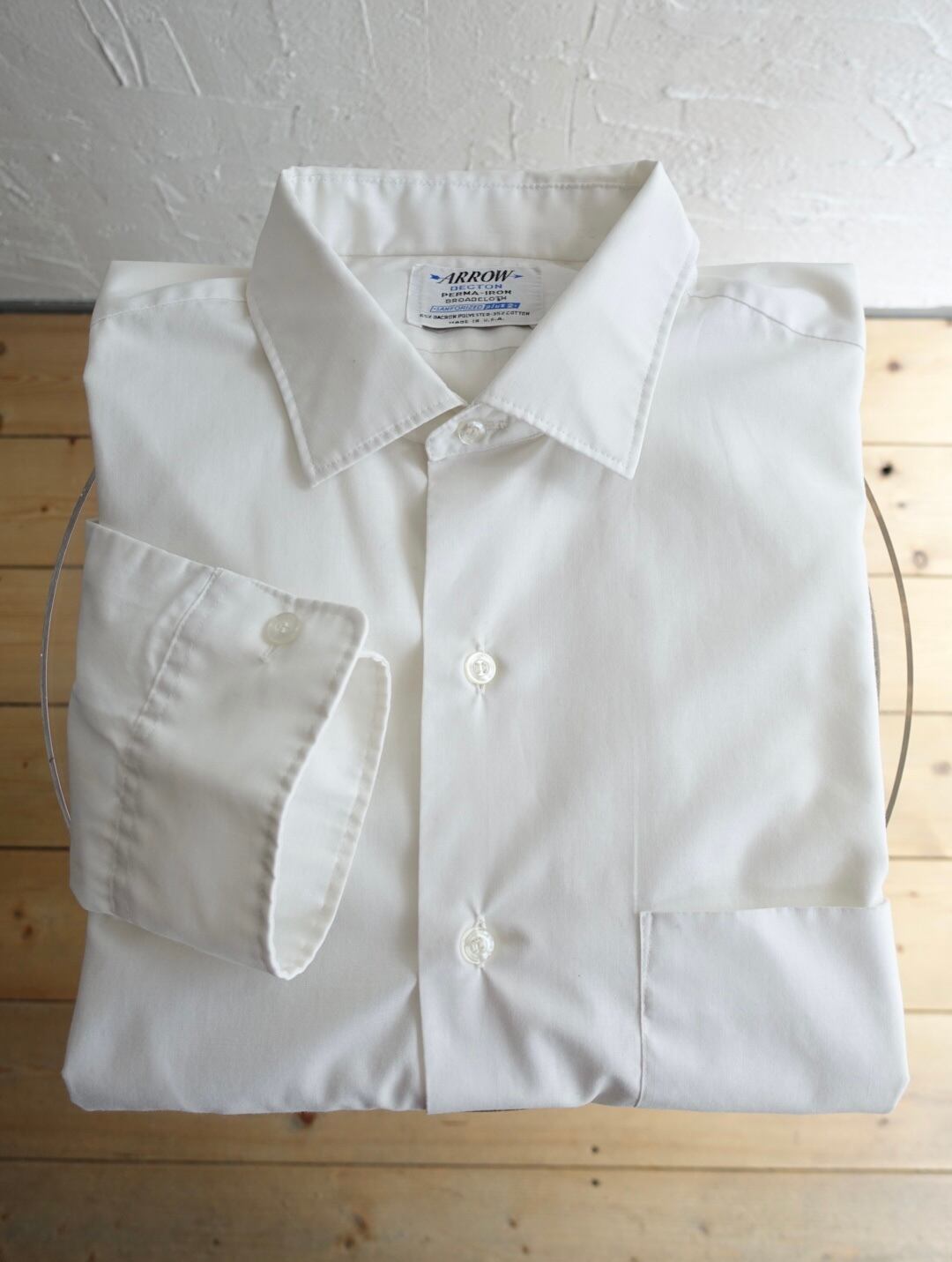 70s USA dress shirt white ①