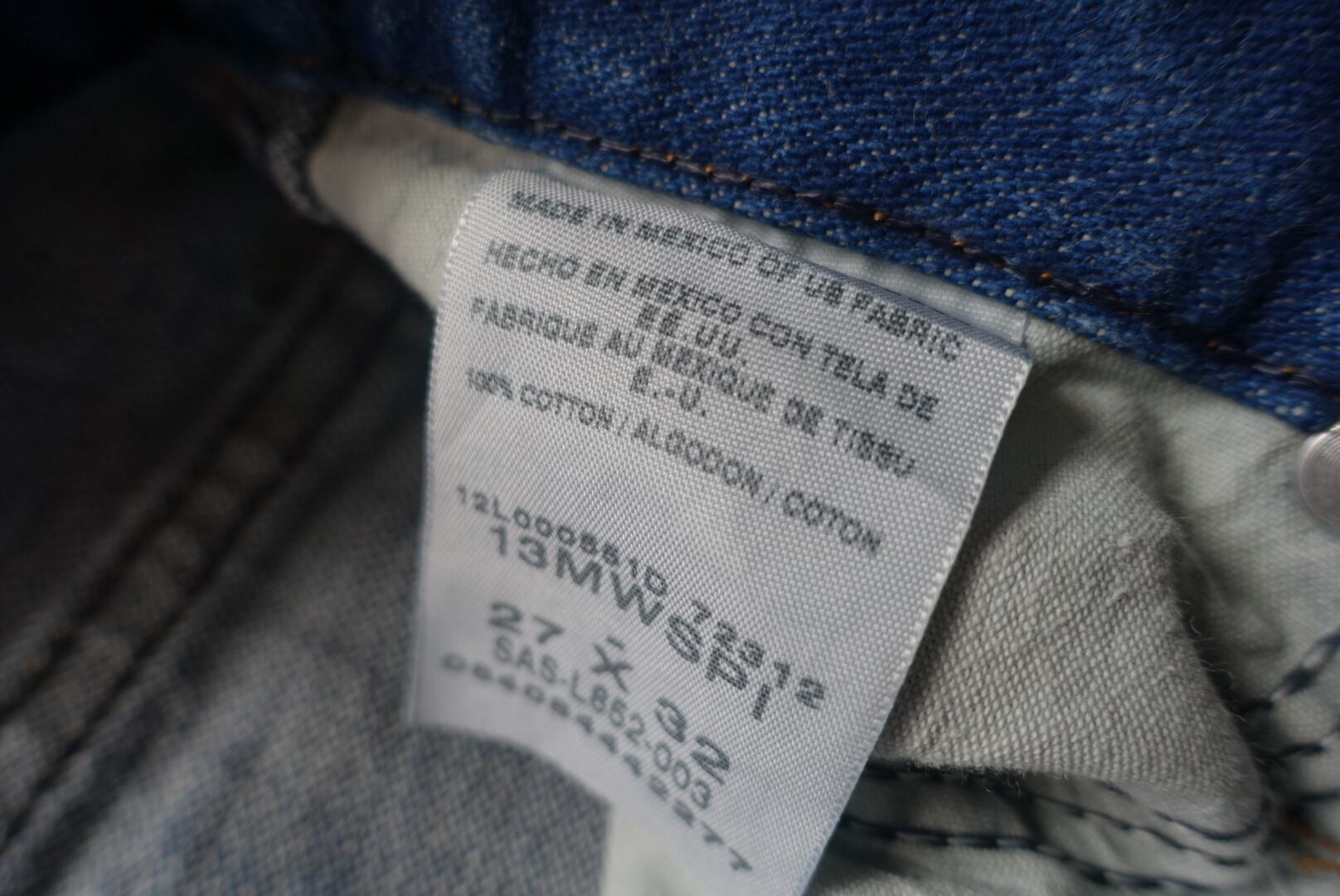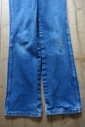 細かなスレやホツレ、デニム特有の色落ちやアタリなどは見られますが着用に致命的なダメージはございません。古着にご理解の上、宜しくお願いいたします。
