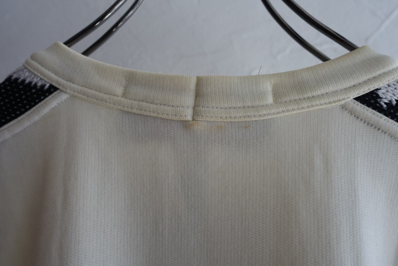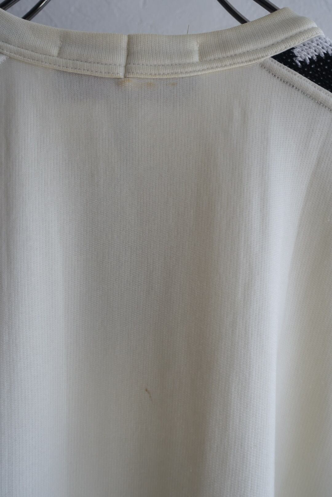 フロント脇付近、両袖内側、襟後ろ、背中に薄汚れ見られます。その他細かなスレなどは少し見られますが着用に致命的なダメージはございません。