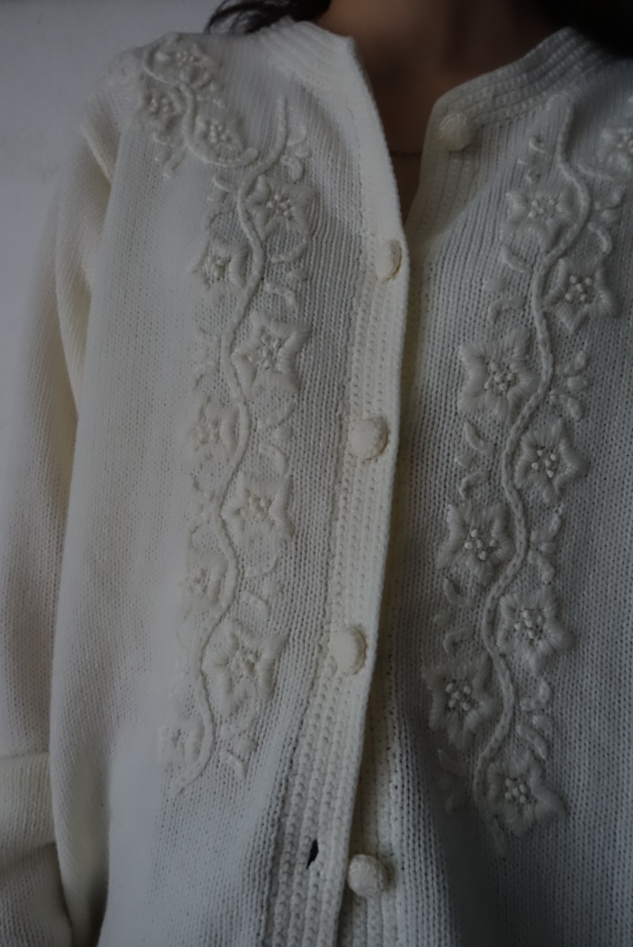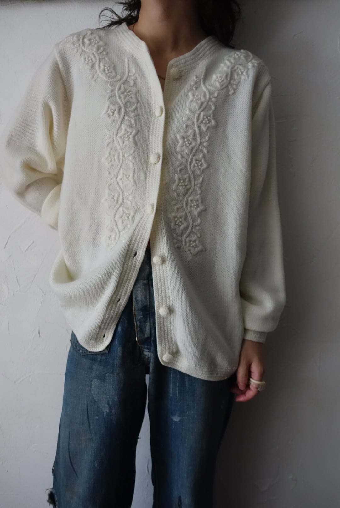 ぷっくりとした星みたいなフラワーモチーフが可愛いニットカーディガン
