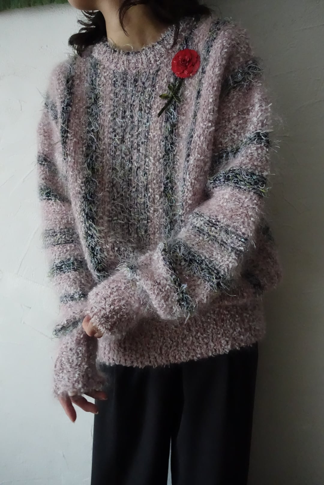 表記は見られませんがmohairが混じり、その他混紡系の質感です。