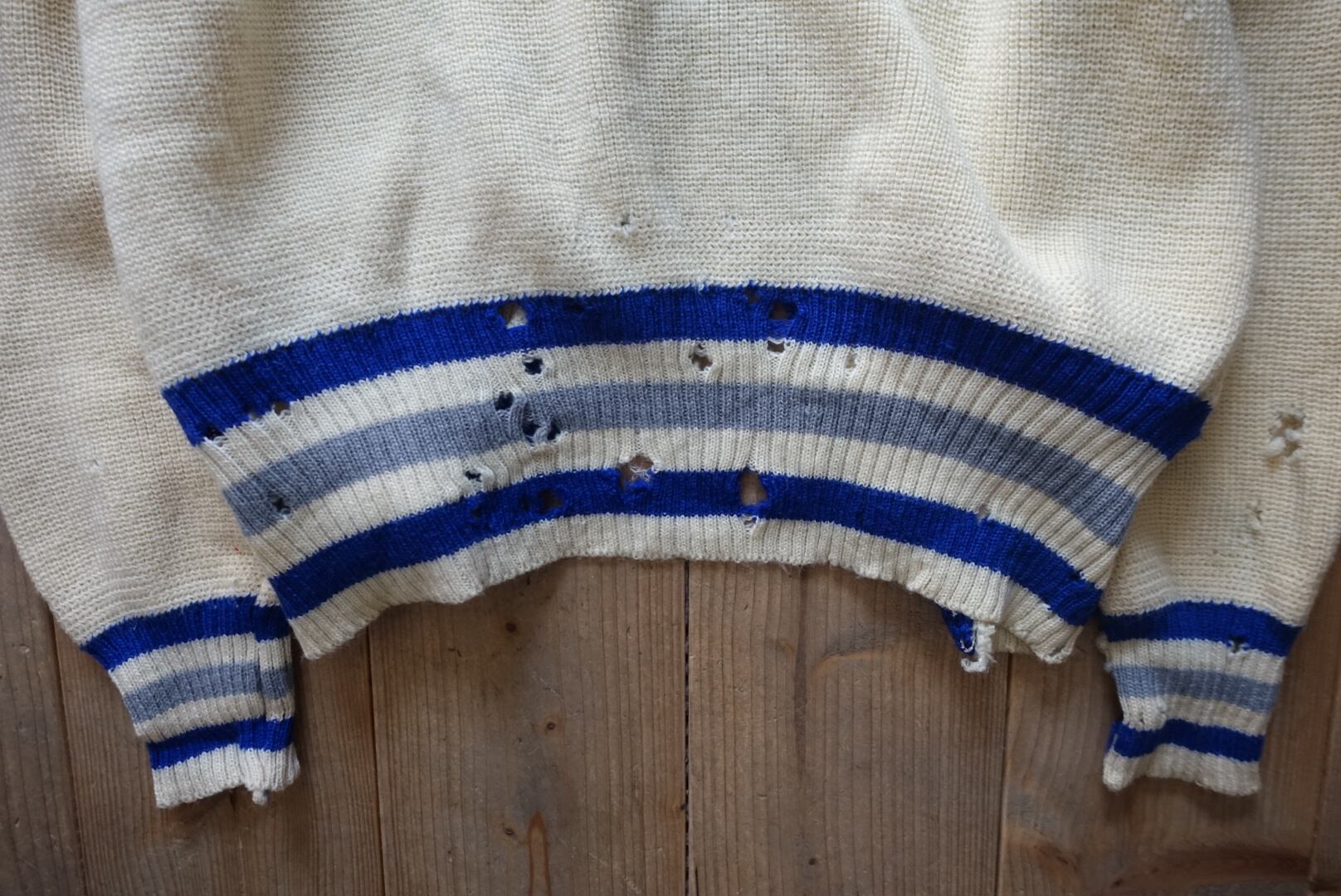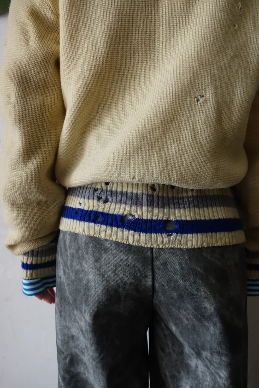 画像のようにダメージが複数見られるコンディションです。着用に致命的なダメージはございませんが、風合いを重視したお品としてビンテージにご理解の上、宜しくお願いいたします。