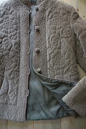 ステッチワークのみの単色のため、可愛いらしくなり過ぎずも、柔らかい印象が素敵なビンテージジャケット。
