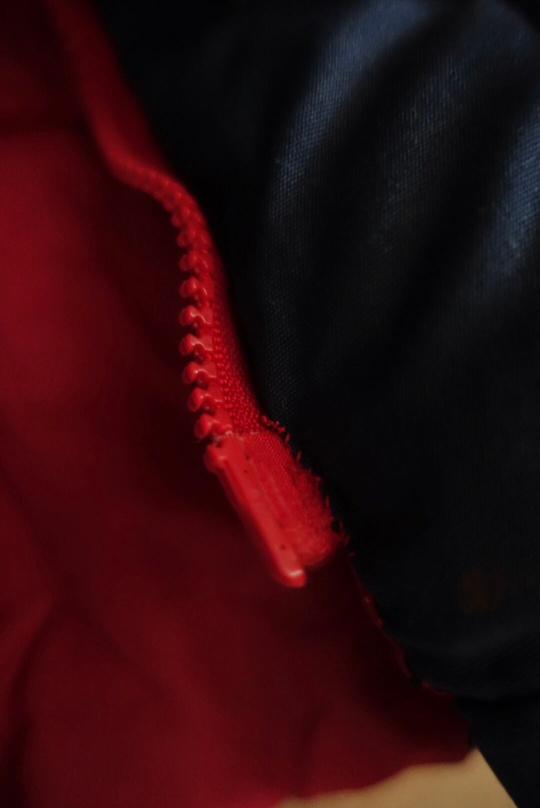 アメリカらしいジッパーと裏地の赤も好きなポイントです。