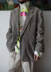 シェイプの弱い形や、コーデュロイという素材感も合わさってカジュアルなバランス。